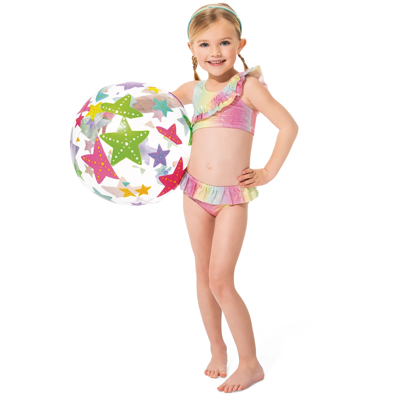 Der wunderschöne aufblasbare Ball Intex Lively Print Balls in drei Motiven animiert nicht nur Kinder, sondern auch Erwachsene zum Spielen am Strand oder im Wasser.