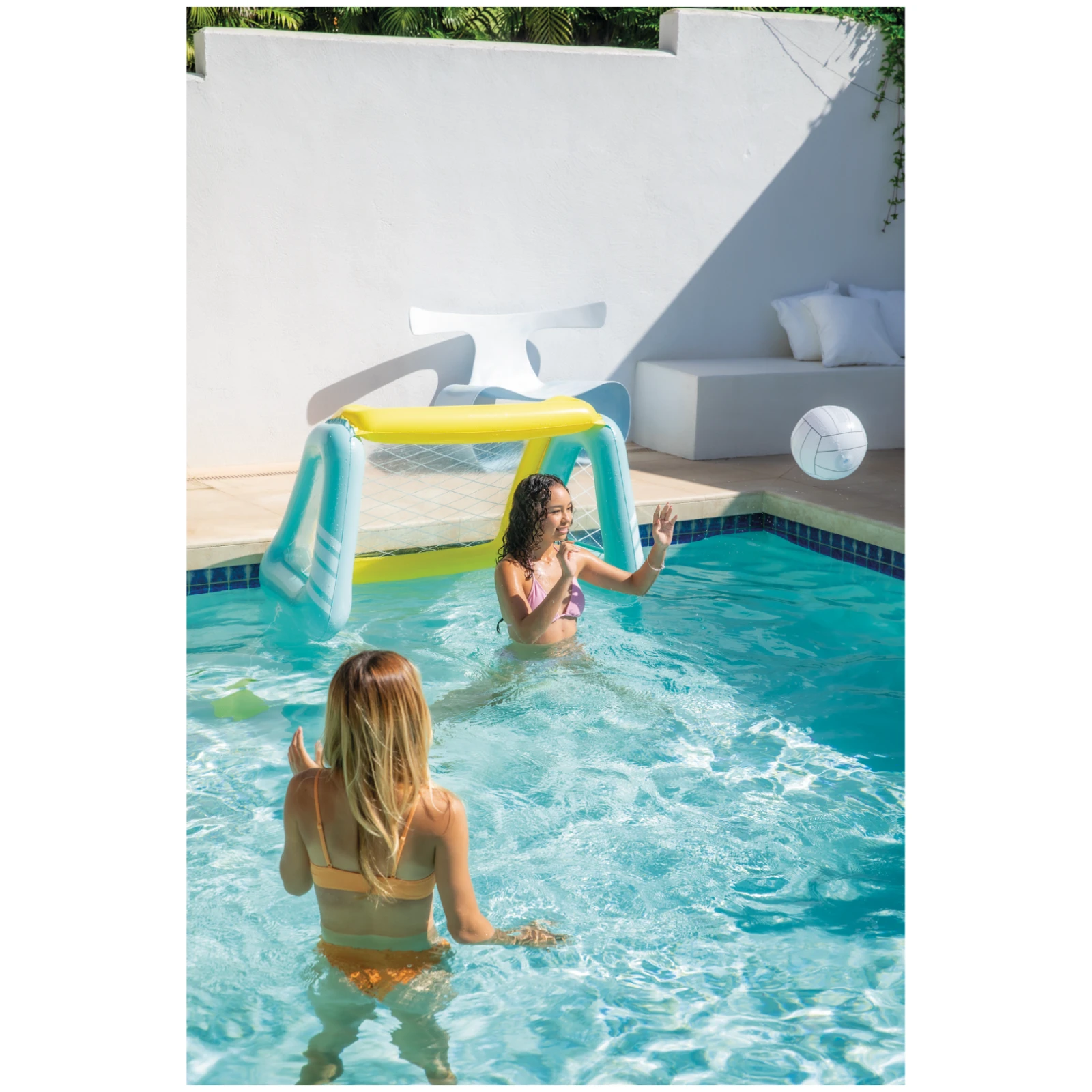 Ein weiteres beliebtes Spielzeug der Traditionsmarke Intex, sowohl für den Pool als auch für den Garten geeignet. Dies ist das aufblasbare Tor mit Ball von Fun Goals Game.