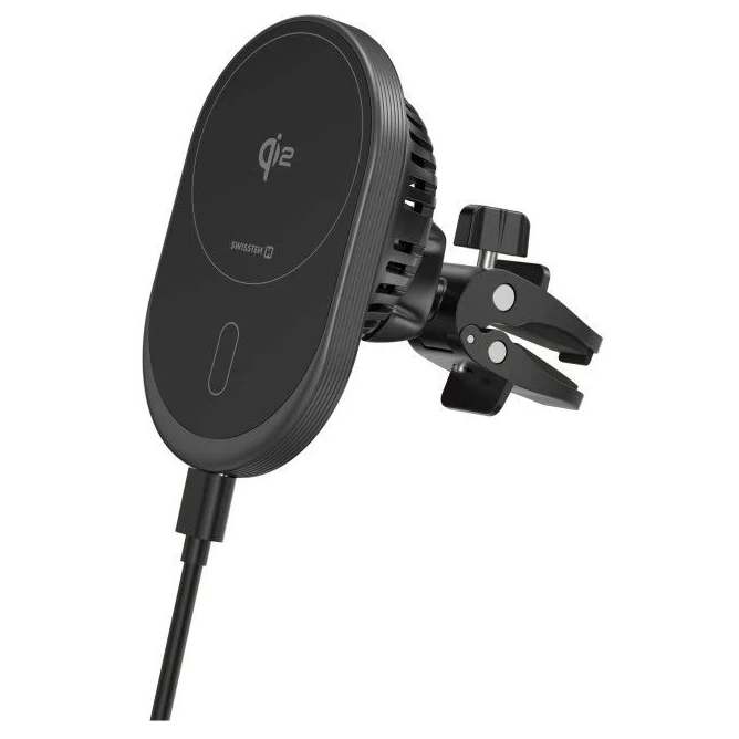 Swissten MagRide ist eine moderne Autohalterung mit Qi2-Wireless-Charging bis 15 W, die iPhones, Samsung und andere kompatible Telefone sicher auflädt.