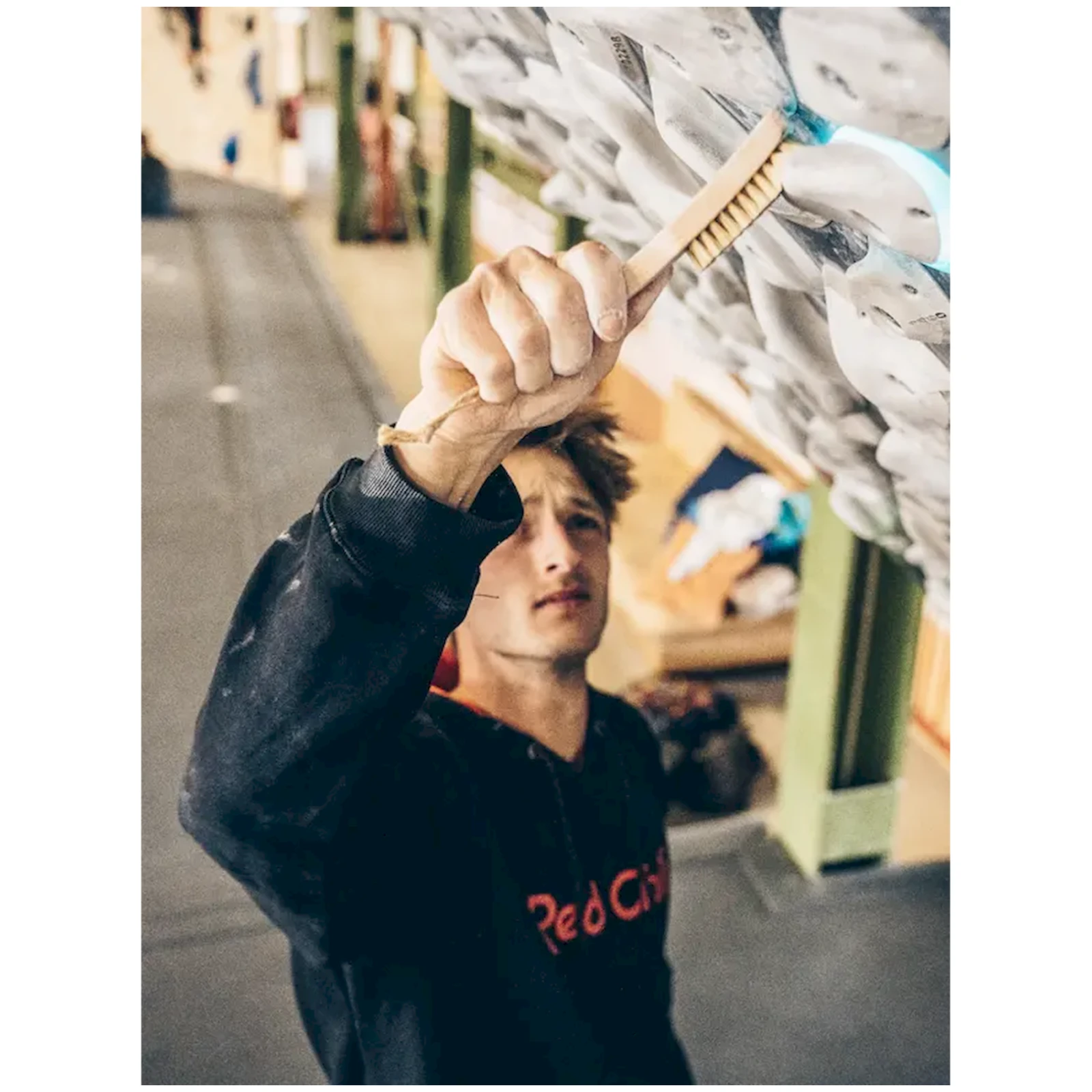 Dirty Hairy ist eine zuverlässige Boulderbürste, die überschüssiges Magnesium von Griffen effizient entfernt – Verunreinigungen an den Griffen können leicht zu ungewolltem Abrutschen führen.