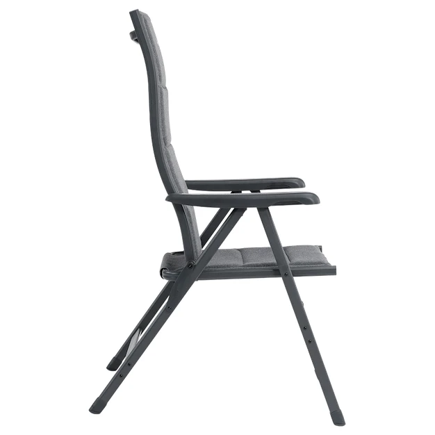 Die dicke Polsterung aus gebürstetem Polyester isoliert gut gegen Kälte, hat eine ausgezeichnete Lichtbeständigkeit und UV-Beständigkeit. Es wird durch einen hochwertigen, leichten Aluminiumrahmen ergänzt. Dies ist ein Garant für Langlebigkeit. Ein Sicherheitsverschluss verhindert ein versehentliches Zusammenklappen. Der Stuhl hat bequeme Armlehnen und eine hohe ergonomische Rückenlehne für optimale Nackenunterstützung. Die Rückenlehne kann in eine der sieben Positionen verstellt werden.