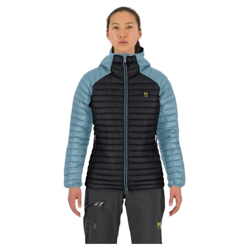Damen Daunenjacke Alagna Down W Jacke von Karpos, bei der Sie keine Angst haben, nass zu werden. Die Jacke bietet die perfekte Kombination aus Wärme und Gewicht – sie wiegt 379 g.