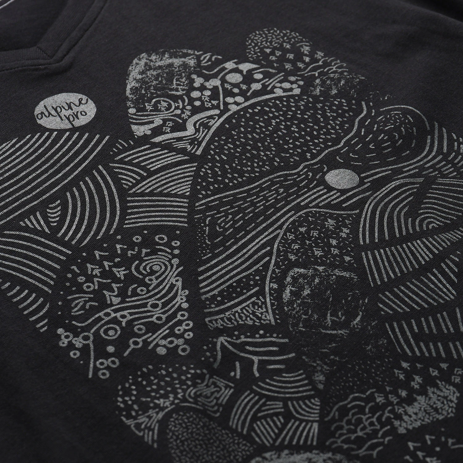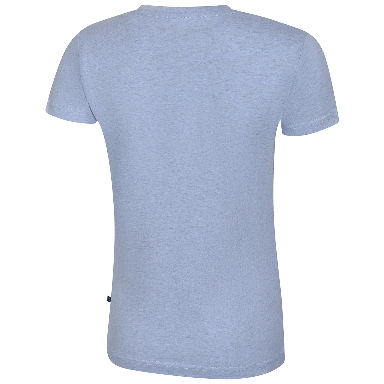 Das moderne meliertes Design wird durch den originellen Aufdruck auf der Vorderseite und die Applikation in der Seitennaht belebt