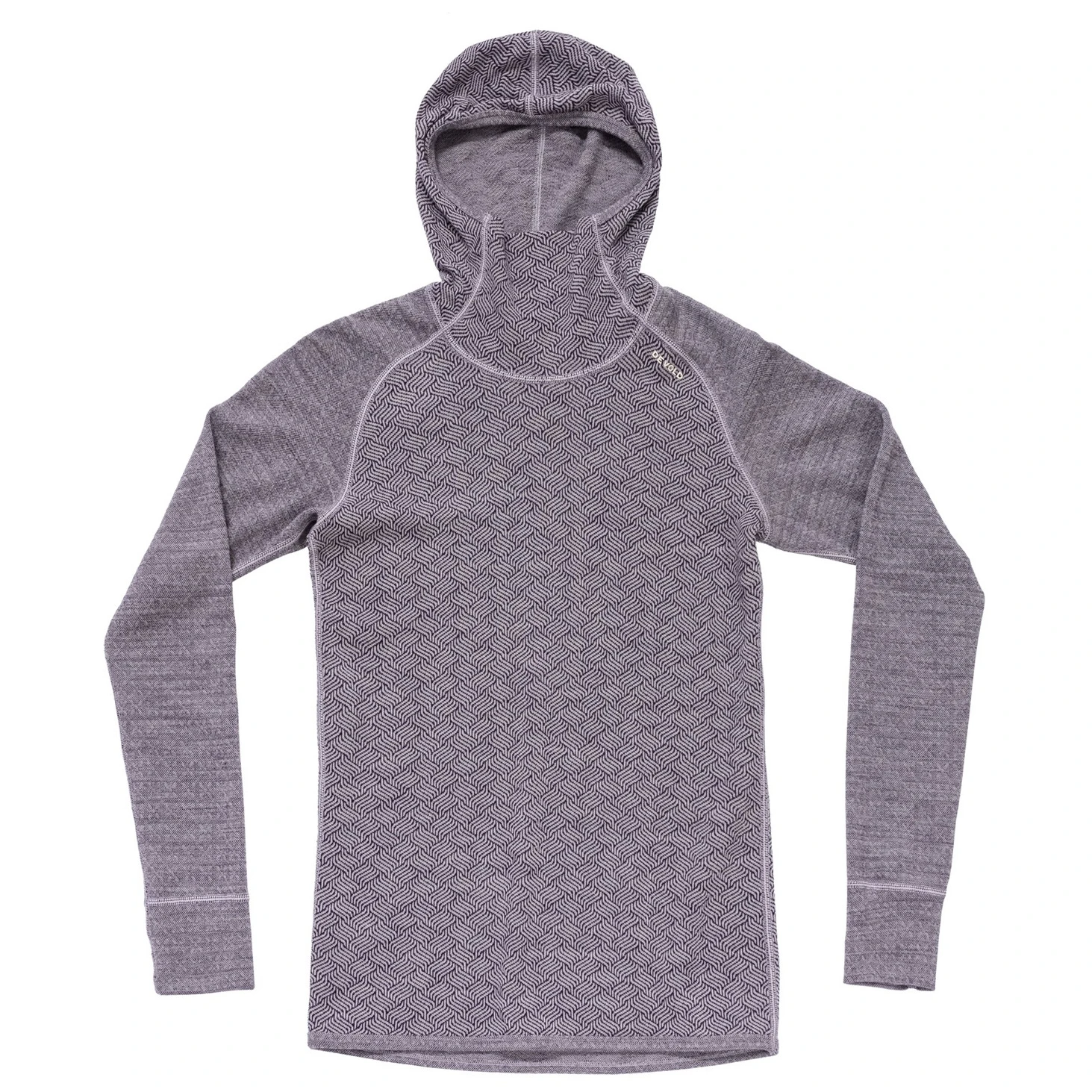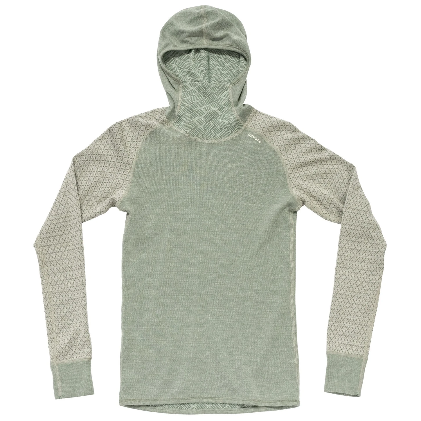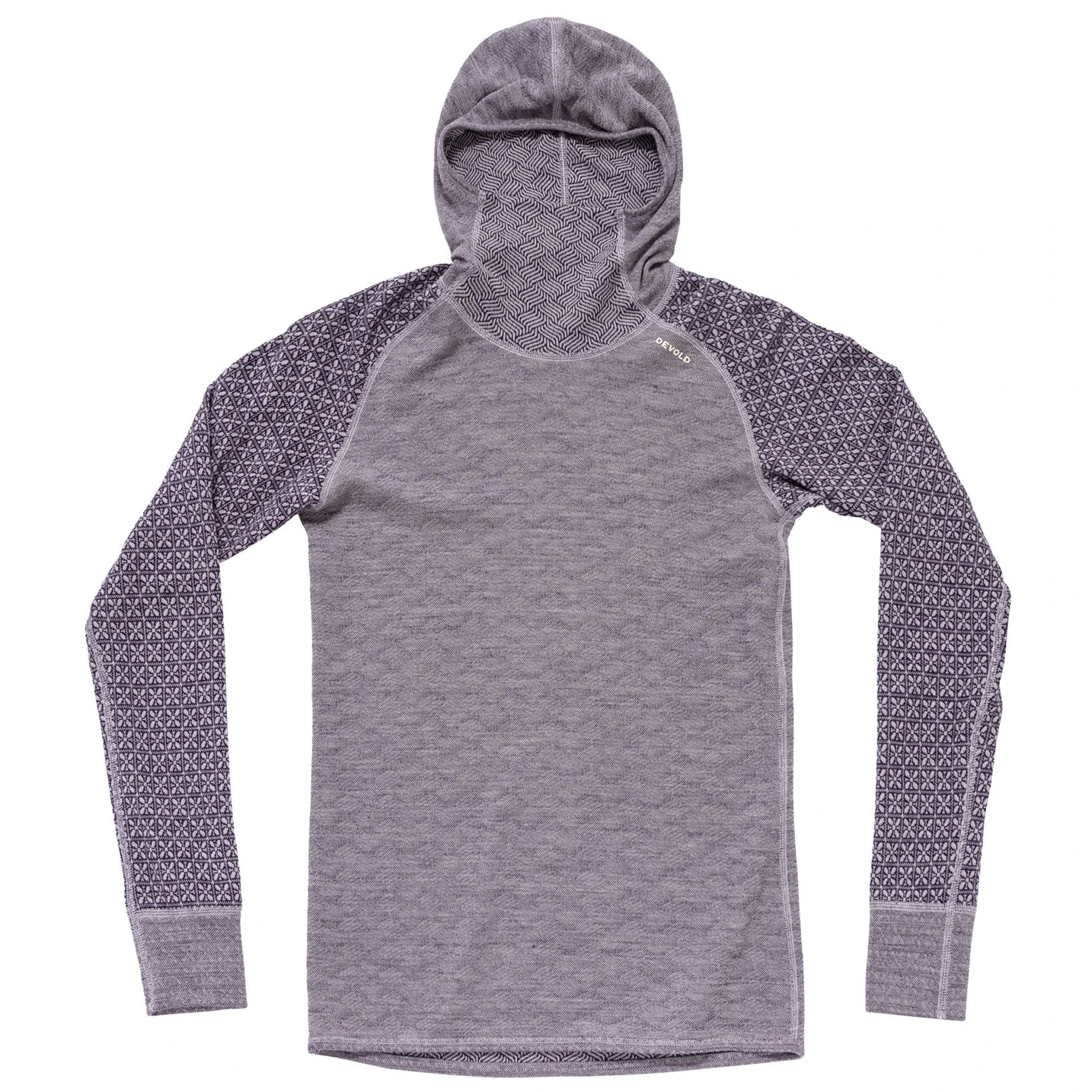 Gehen Sie mit der Gewissheit aus, dass Ihnen warm sein wird. Devold Kvitegga ist eine der wärmsten Basisschichten von Devold, die für Aktivitäten mit geringerer Intensität entwickelt wurde, bei denen die Wärmeisolierung entscheidend ist. Dieses Modell mit Kapuze und erhöhtem Kragen schützt Hals, Rücken und Kopf vor Kälte, während Raglanärmel und ein verlängerter Rücken für Komfort und Bewegungsfreiheit sorgen. Einzigartig ist die beidseitige Ausführung – Sie können je nach Stimmung oder Stil zwischen einem feinen geometrischen und einem markanten grafischen Muster wählen.