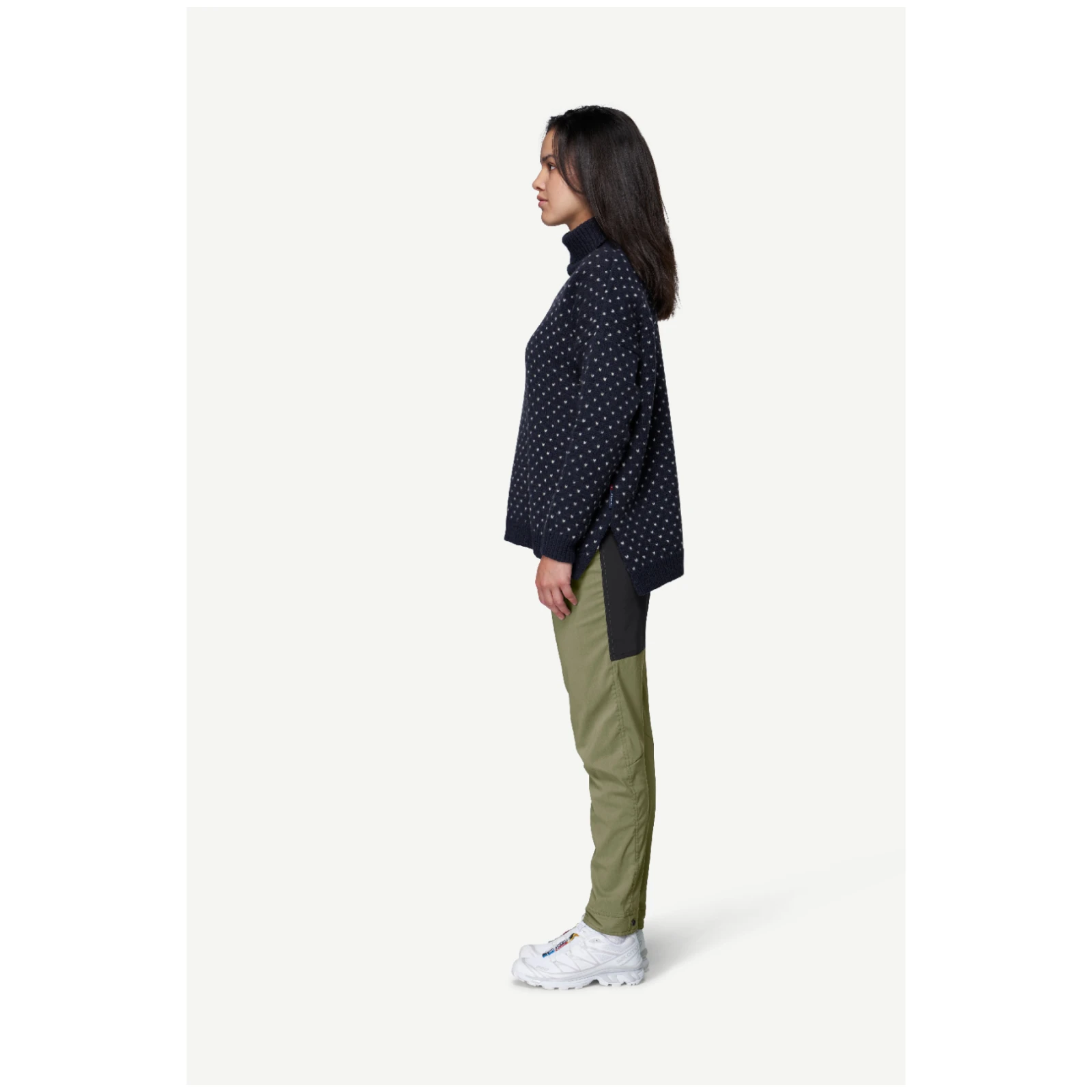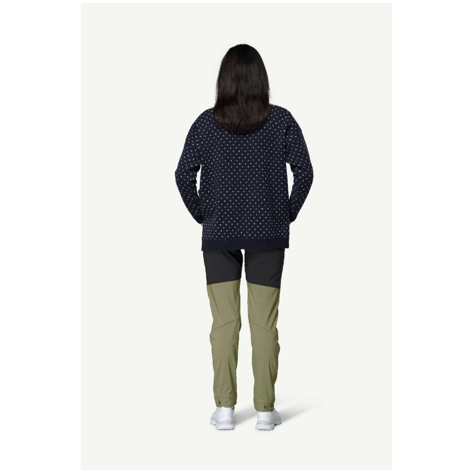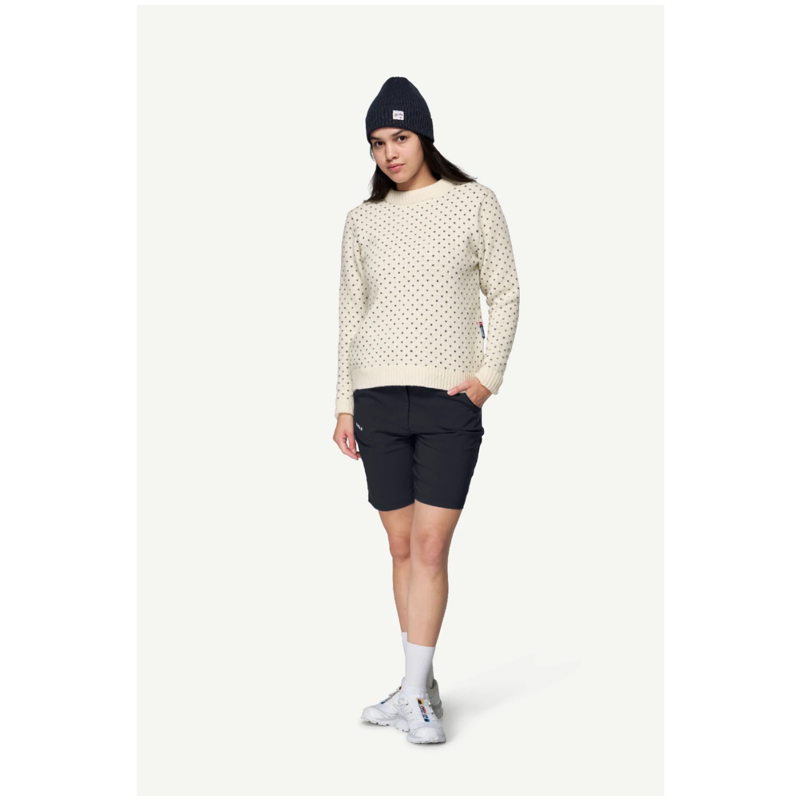 Minimalistische norwegische Muster verleihen ihm einen zeitlosen Look, während das klassische glatte Gestrick und die Rippenbündchen an Ärmeln und Saum für ein angenehmes Tragegefühl sorgen. Wolle natürlich isoliert, reguliert die Temperatur und wärmt auch im feuchten Zustand, sodass Sie bei jedem Wetter trocken und komfortabel bleiben.