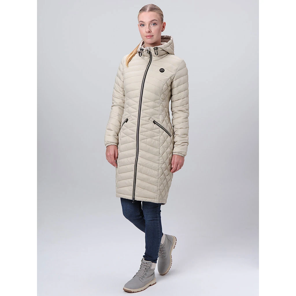 Der Loap JEMINA Damenmantel ist der ideale Begleiter für kalte Tage, egal ob beim Ausflug in die Stadt oder beim gemütlichen Spaziergang. Dieser Mantel vereint Funktionalität mit Eleganz und bietet einen hervorragenden Wärmekomfort dank der isolierenden Füllung aus POLYTHERM-Hohlfasern, die sich durch Formgedächtnis auszeichnet. Dadurch passt sich der Mantel Ihrer Figur an und bietet maximalen Tragekomfort. Die größere Länge und das weiche Futter sorgen für zusätzlichen Komfort und Wärme.