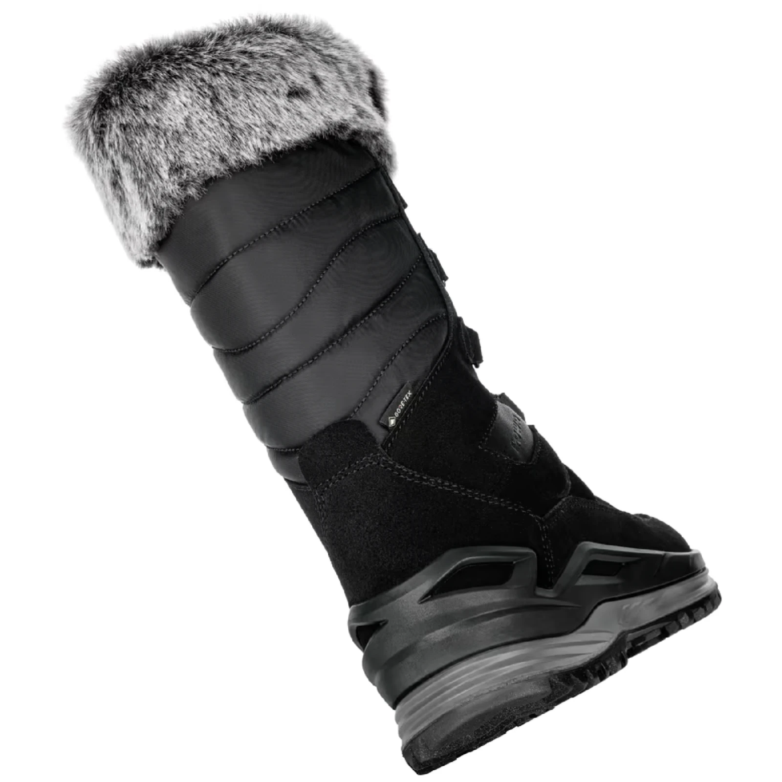 - hoher Schaft mit einer sanft geformten Wade und einem weichen „Pelz“-Kragen für Komfort und Schutz vor Schnee und Kälte