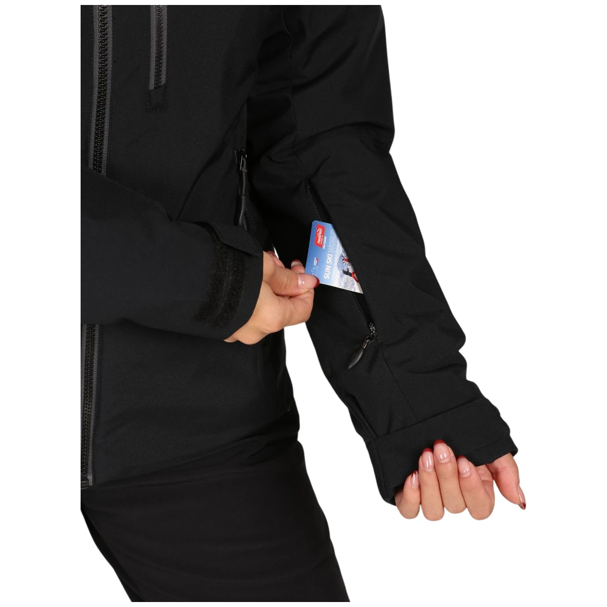 - praktische Taschen, einschließlich Skipasstasche.