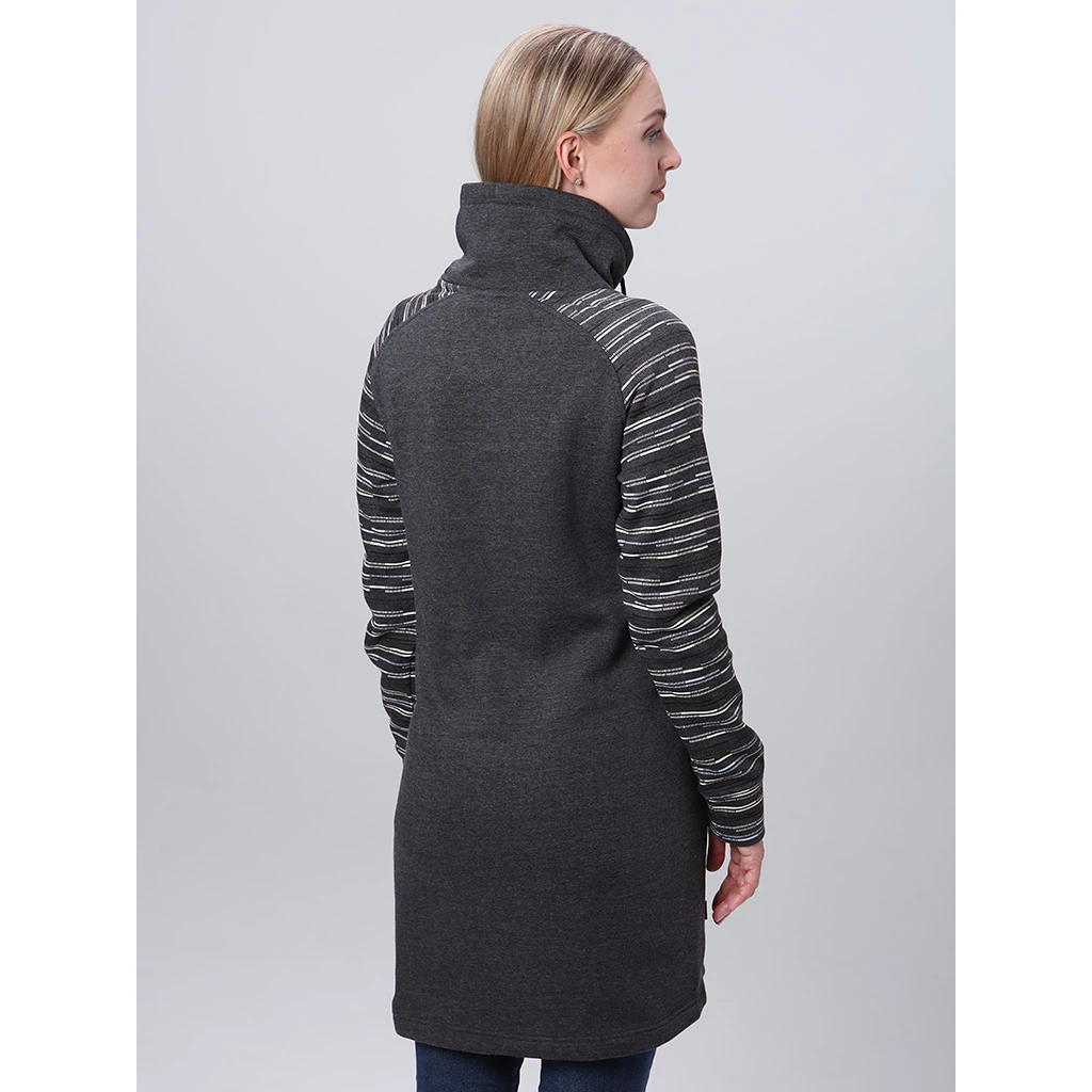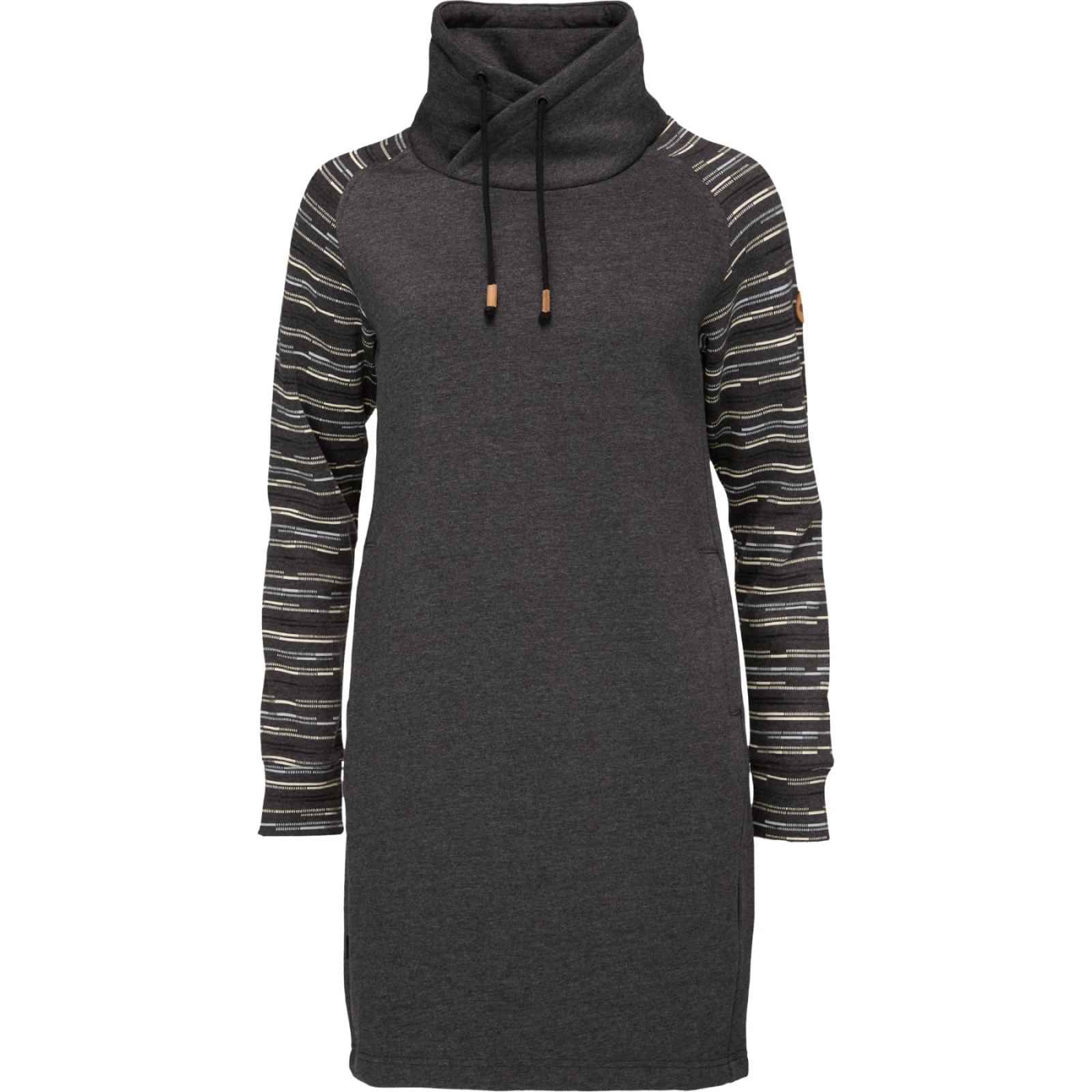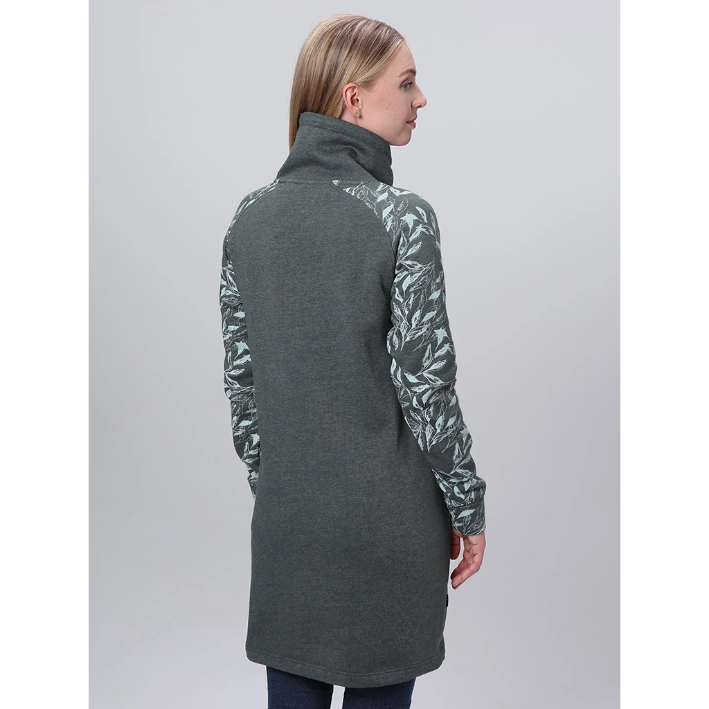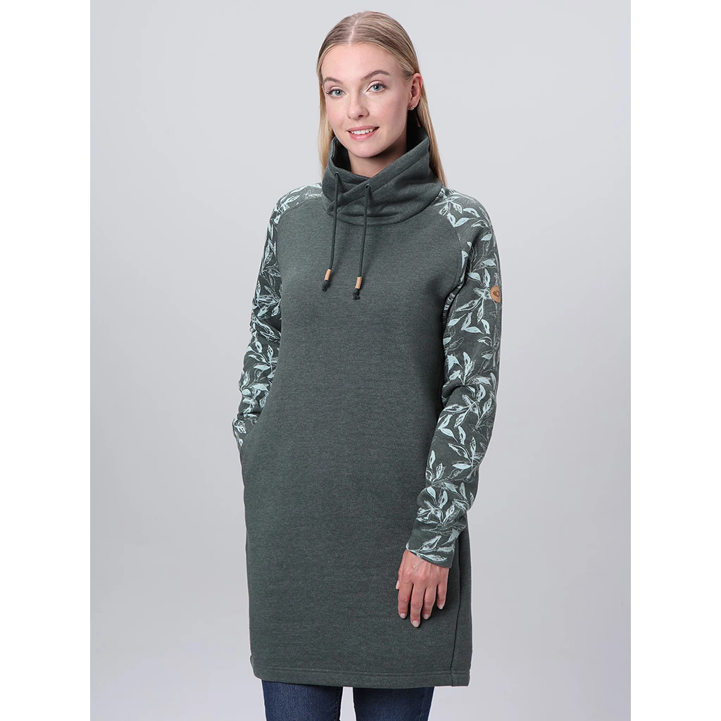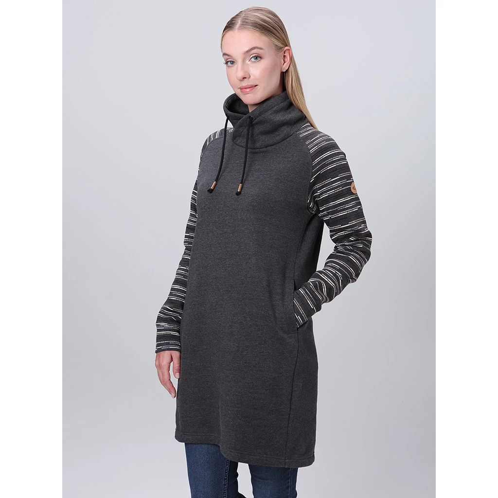 Das Kleid ist im klassischen Schnitt mit Raglanärmelngestaltet, die für Bewegungsfreiheit sorgen. Die untere Kante ist aufgeknöpft, was zum angenehmen Tragekomfort beiträgt. Das originelle Muster an den Ärmeln verleiht dem Kleid eine einzigartige Optik, die bereits auf den ersten Blick ins Auge sticht und zwei praktische Taschen an den Seiten betonen den sportlichen Charakter dieses Fashion-Pieces. Das EBNERA Loap ist das ideale Kleid, in dem Sie sich jeden Tag selbstbewusst und wohl fühlen.