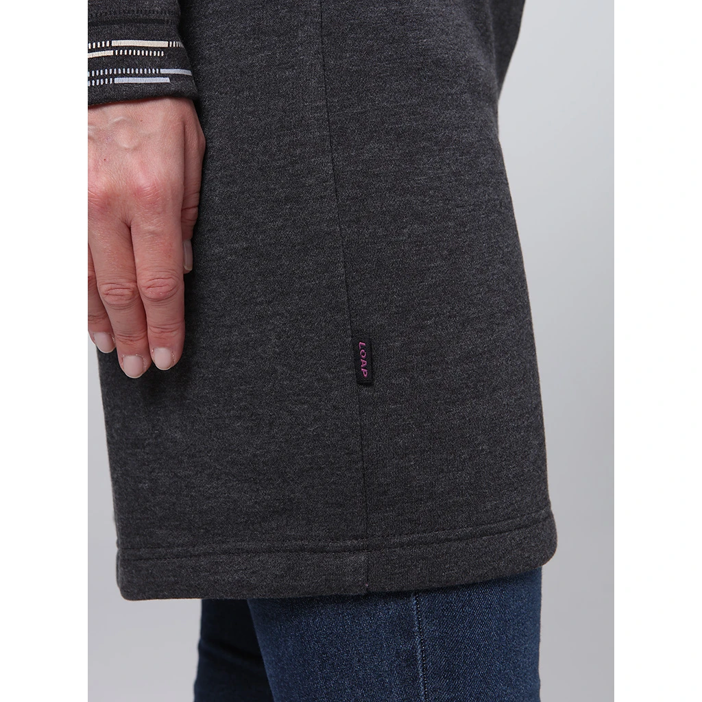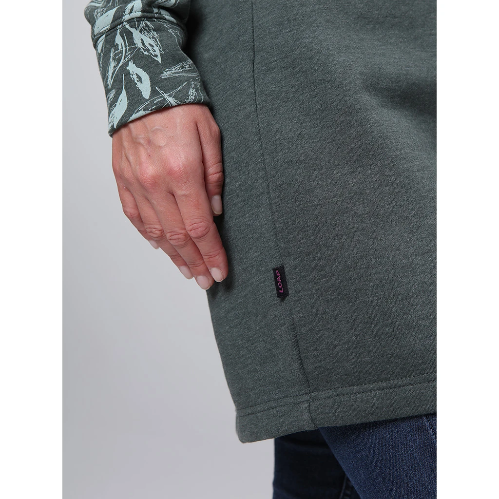 Damen-Sweatshirtkleid Loap EBNERA ist die perfekte Wahl für Frauen, die eine Kombination aus Eleganz und Komfort suchen. Hergestellt aus hochwertigem Material, einer Mischung aus Baumwolle und Polyester, bieten sie maximalen Tragekomfort. Das Kleid bleibt lange formstabil und eignet sich durch die geringe Knitterbildung ideal zum ganztägigen Tragen im Beruf, in der Schule oder bei Freizeitaktivitäten. Die höhere Dichte des Materials sorgt auch an kälteren Tagen für ein wärmendes Gefühl, während der praktische Kragen den Hals vor Wind schützt und dem Kleid eine interessante Optik verleiht.