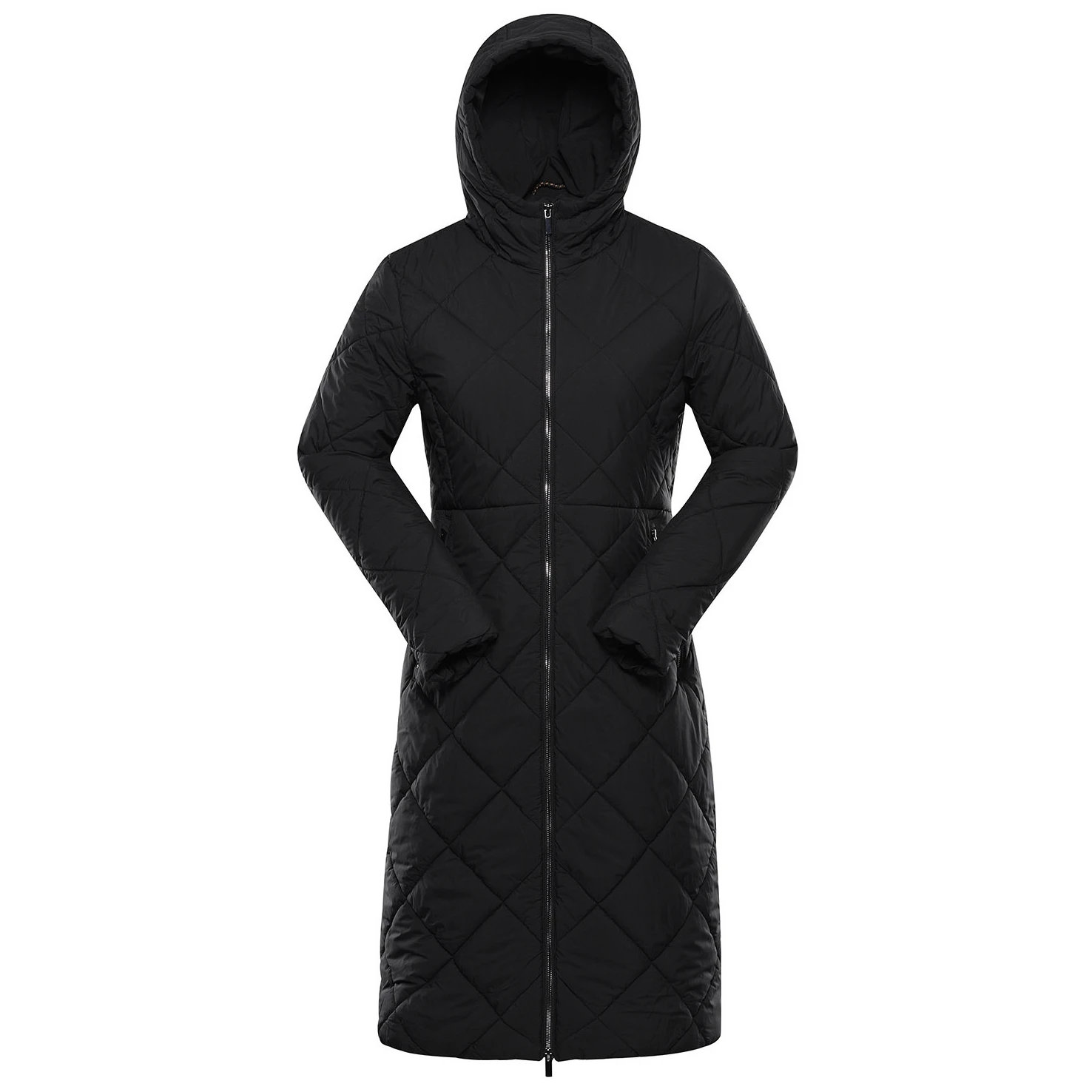 Dank des Slim-Fit-Schnitts und der dekorativen Steppung wirkt der Mantel elegant, betont die weibliche Silhouette und verleiht dem Gesamtdesign ein modernes Aussehen. Die nicht abnehmbare Kapuze schützt vor schlechtem Wetter, während der Zwei-Wege-Reißverschluss das Anziehen erleichtert und mehr Komfort beim Gehen bietet. Die praktischen Taschen bieten Platz für das Nötigste und ein dezentes Abzeichen auf der Vorderseite unterstreicht den zeitlosen Charakter des Mantels.