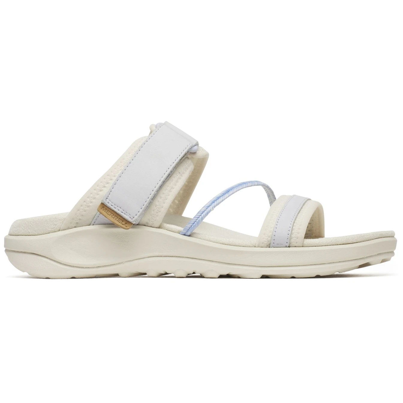 Die Damen-Sandalen Merrell Terran 4 Slide verfügen über einen verstellbaren Riemen, eine weiche Schaumstoff-Einlegesohle und eine griffige Laufsohle für bequemen Tragekomfort.