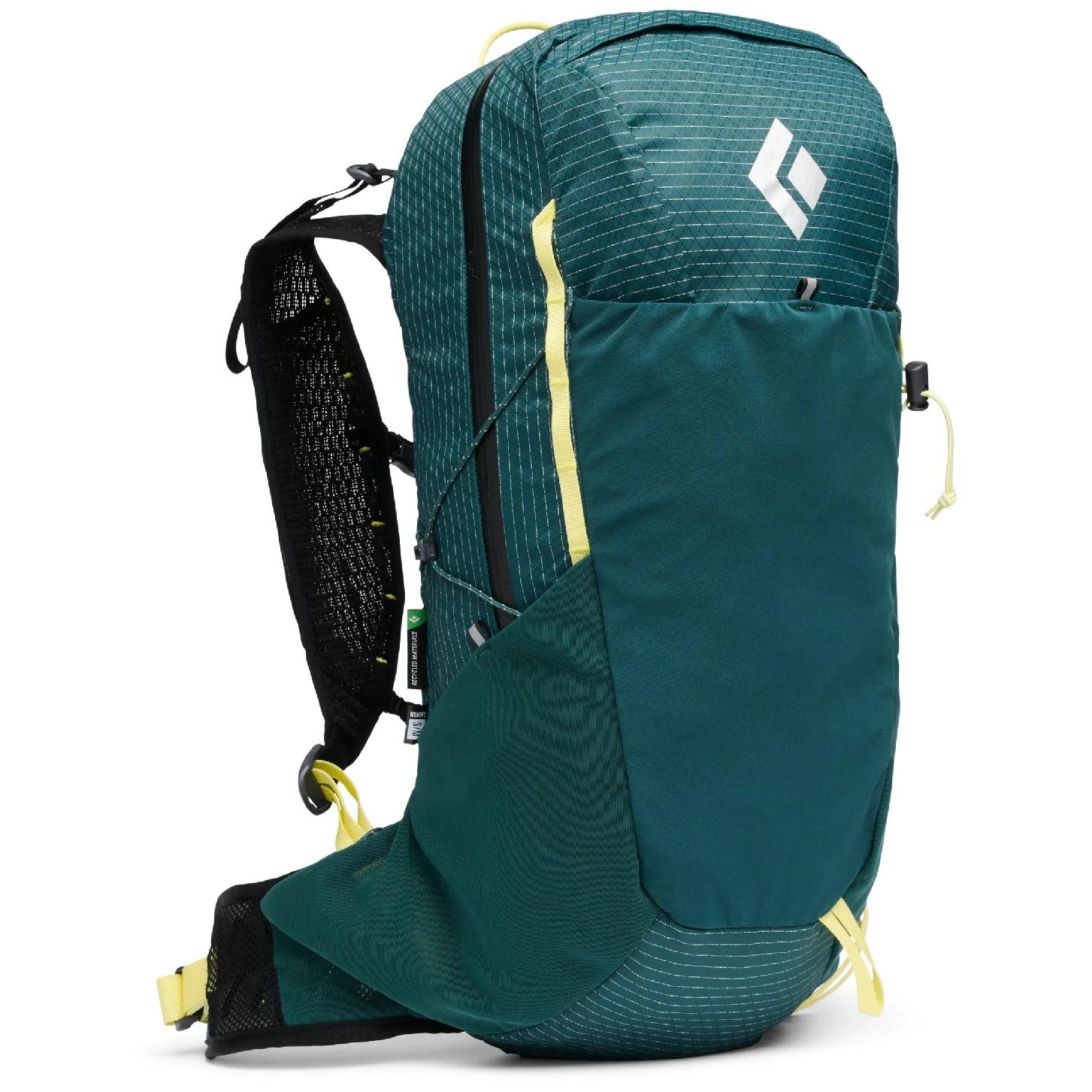 Der Rucksack bietet eine intuitive Taschenorganisation – schnell zugängliche Seitentaschen, Stretch-Taschen zur Aufbewahrung von Ausrüstung während des Gehens und eine Halterung für Z-Poles. Eine externe Tasche für einen Trinkbeutel und ein atmungsaktives Rückenpanel sind ebenfalls vorhanden. Das Volumen beträgt 25 Liter, das Gewicht ca. 668 g (Gr. S/M) und der Rucksack besteht zu 100 % aus recycelten Materialien für Körper und Futter.