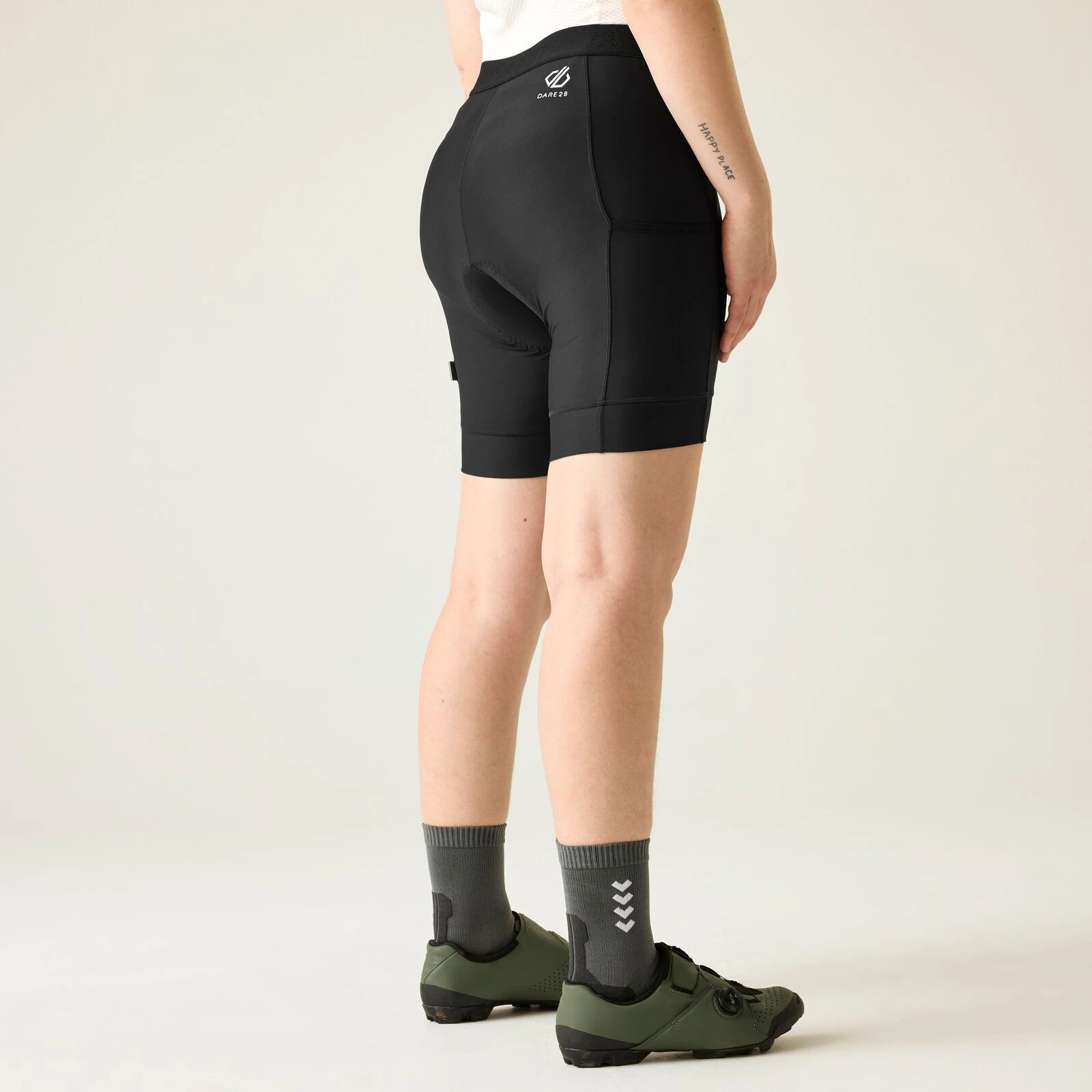 Damen-Radsporthose Dare 2b Prompt II Short, konzipiert für anspruchsvolle Fahrten, bei denen Komfort und funktionelle Details geschätzt werden. Die Ride Fit Pro-Technologie unterstützt eine aerodynamische Fahrposition und hilft, Volumen und Gewicht zu reduzieren, was zu besserer Ausdauer und flüssigerer Leistung beiträgt.
