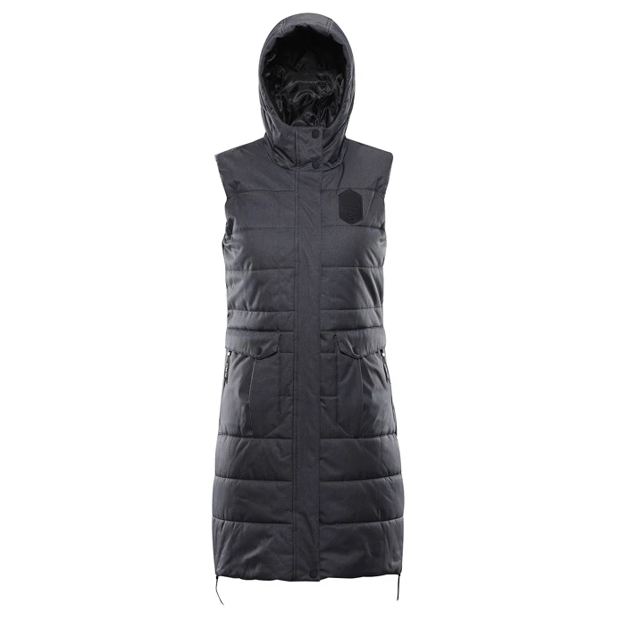 Die Damenweste Harda der Marke Alpine Pro schützt Sie dank der verwendeten Materialien mit PTX-Membran und spezieller DWR -Behandlung vor Regen, Schnee und Wind. Die dicke Wattierung und das nötige Futter halten den Körper auch bei schlechtem Wetter warm. Die leicht taillierte, lange Schnittführung und der flauschige Style passen perfekt zu jeder Figur. Diese Weste hat einen verstellbaren Saum, wichtige Taschen, eine Kapuze mit Kordelzug, längere Reißverschlüsse und moderne Aufnäher auf der Vorderseite.
