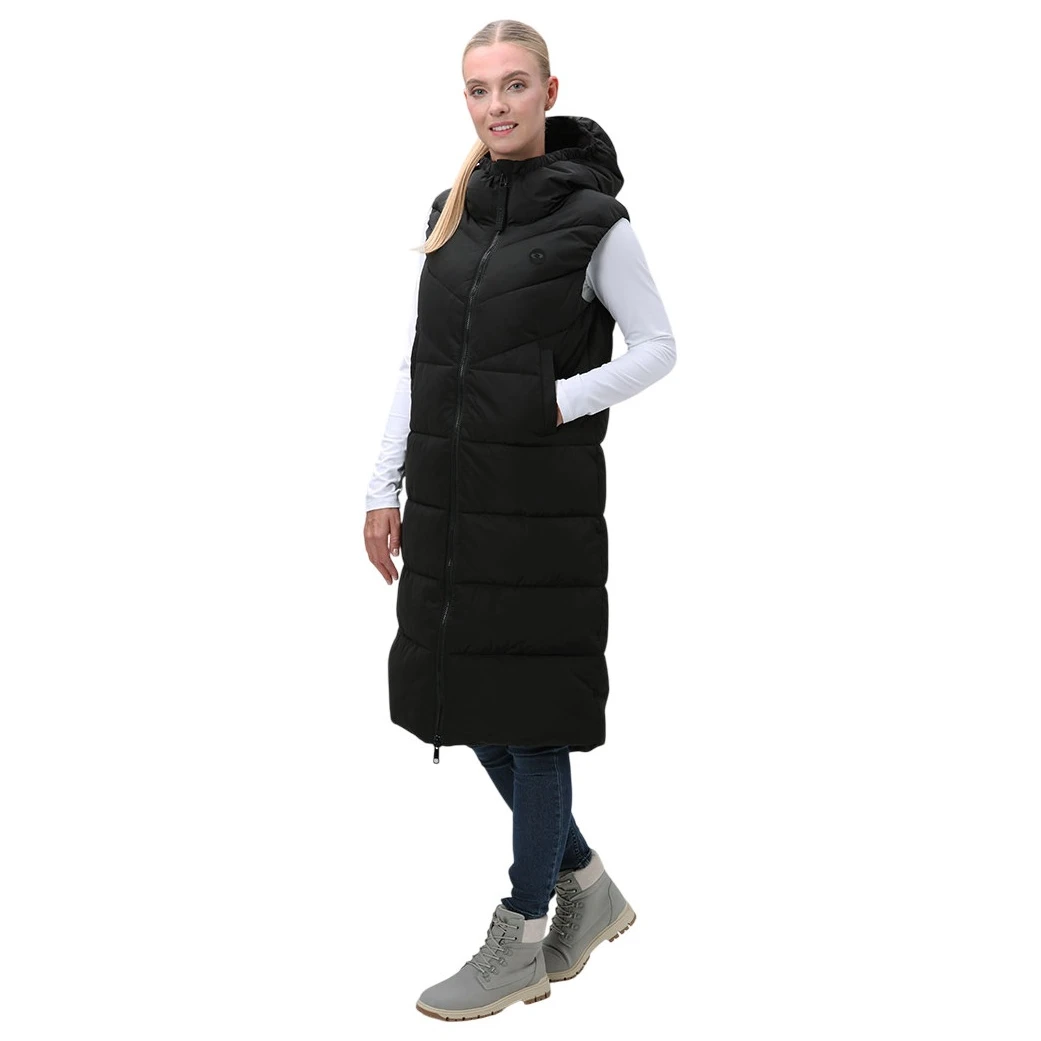 Die lange Damenweste Loap Tanja ist eine ausgezeichnete Wahl für Tage, an denen es für eine Jacke noch zu warm ist, Sie aber dennoch einen angenehmen Komfort wünschen. Für diesen sorgt die Polytherm-Hohlfaserisolierung, die hervorragend isoliert und zudem ihre Formbeständigkeit behält. Die wasserabweisende DryTech-Beschichtung schützt Sie vor leichtem Regen oder Schnee, sodass Sie auch von weniger günstigem Wetter nicht überrascht werden.