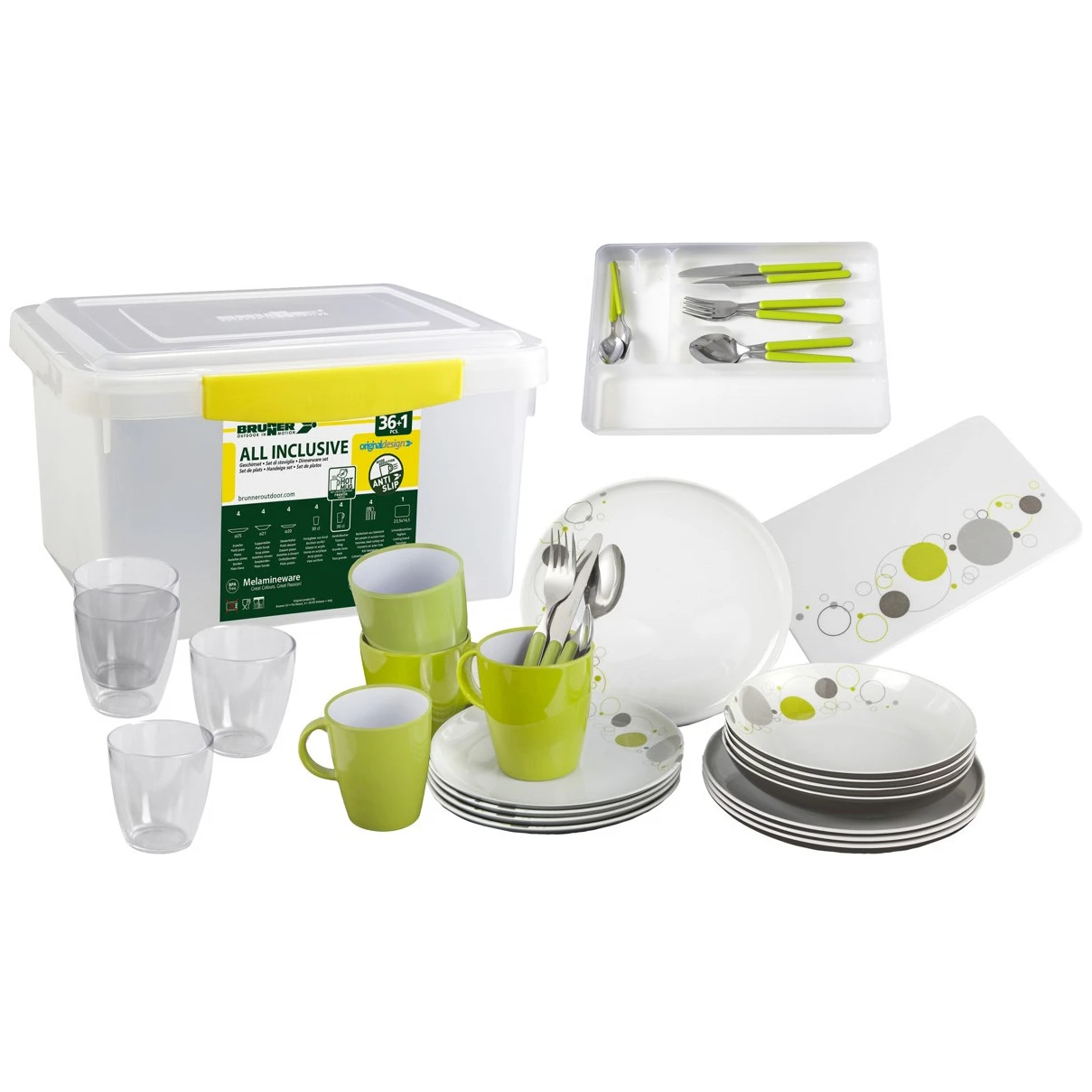 Das All Inclusive Space von Brunner ist ein hochrobustes und stilvolles 36-teiliges Geschirrset, das alles Nötige für ein perfektes Camping-Erlebnis bietet.