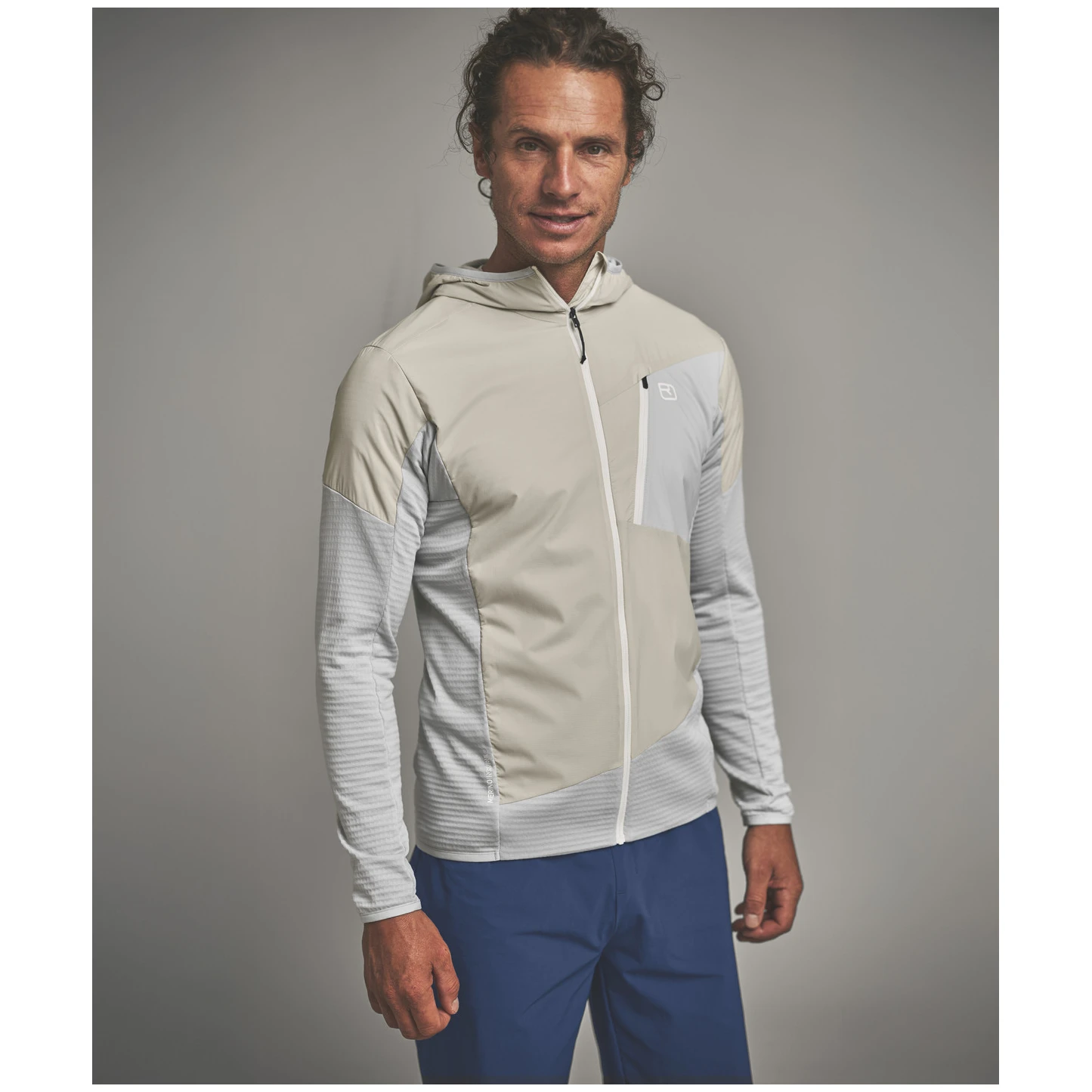 Die Basis der Jacke ist das Material MERINO FLEECE LIGHT GRID. Dieses hat auf der Innenseite eine spezielle Waffelstruktur (erinnert an kleine Quadrate), die warme Luft einschließt. Dank dessen isoliert die Jacke hervorragend, ist aber gleichzeitig sehr leicht und kann Schweiß blitzschnell ableiten. Die verwendete Merinowolle ist zudem sehr angenehm auf der Haut und sorgt dafür, dass Sie sich auch bei anstrengenden Aufstiegen trocken fühlen.