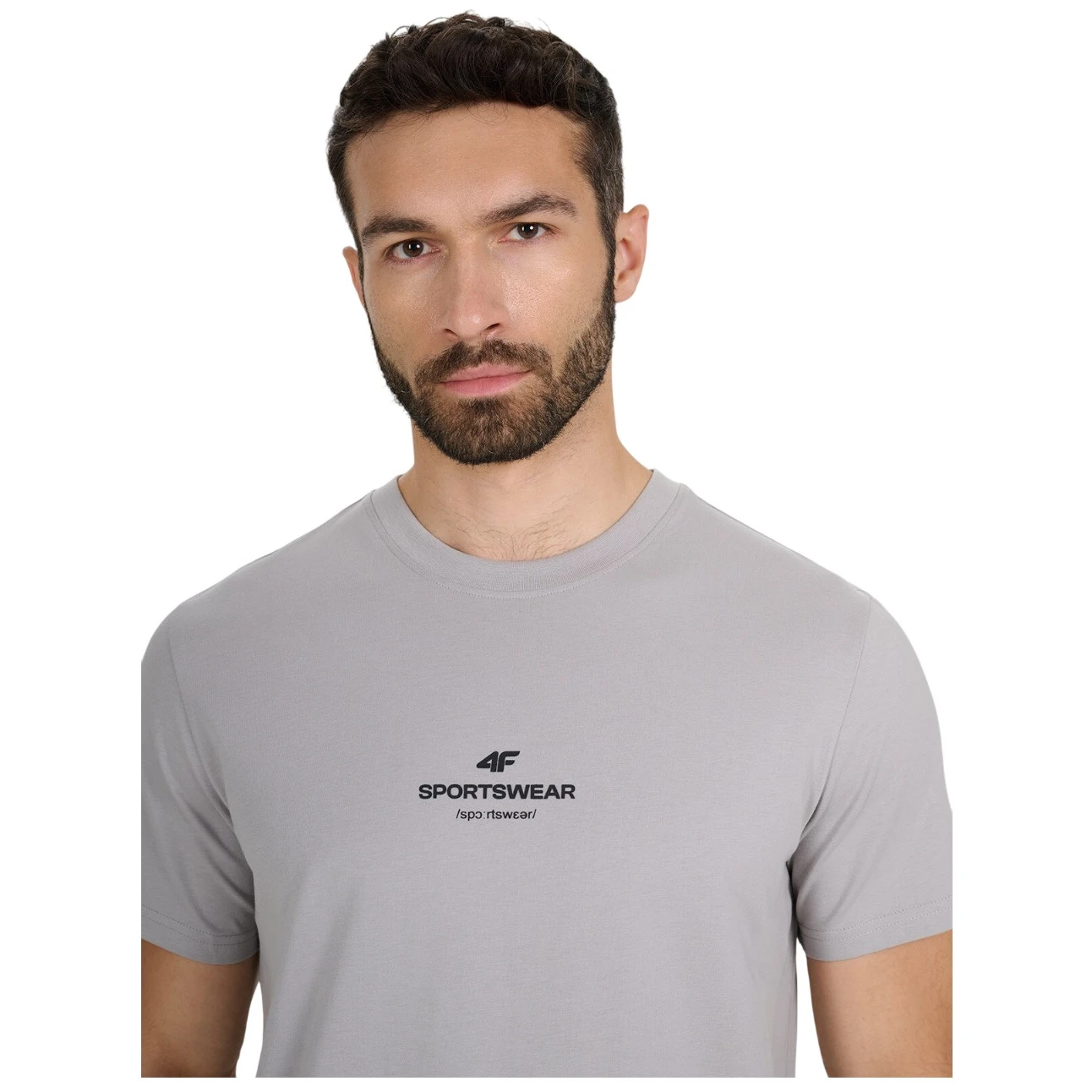 Herren T-Shirt 4F Tshirt M2961 aus 100% Baumwolle mit einem Gewicht von 180 g/m², regulärer Schnitt, Rundhalsausschnitt und sportlichem Aufdruck auf der Vorderseite.
