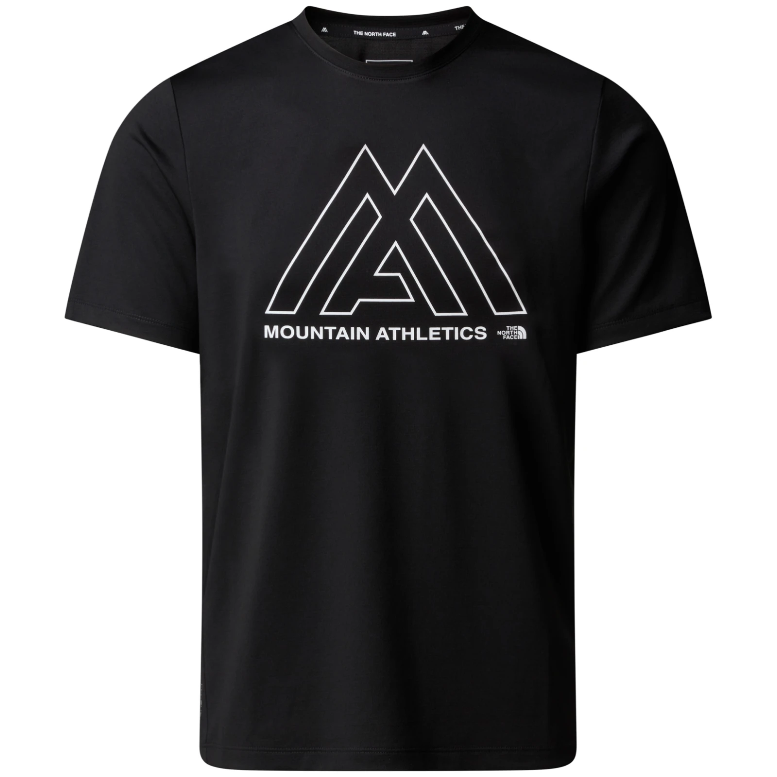 Das T-Shirt hat einen klassischen Schnitt mit kurzen Ärmeln, einen bequemen Rundhalsausschnitt und einen auffälligen grafischen Aufdruck Mountain Athletics auf der Vorderseite und dem Ärmel. Der Innenkragen ist mit dem Markenlogo bedruckt, was für eine detaillierte Verarbeitung und Tragekomfort sorgt.