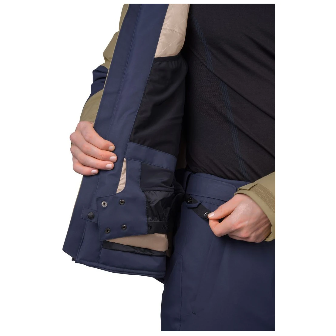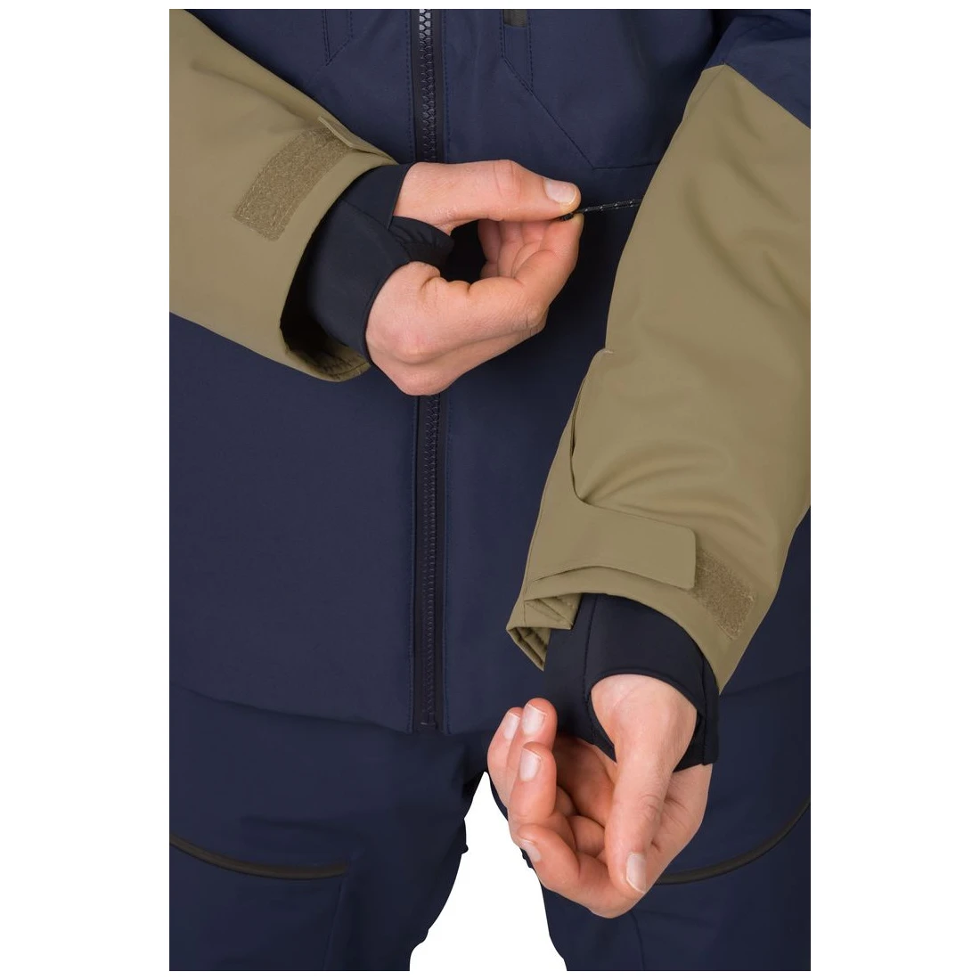 Von wasserdichten YKK -Reißverschlüssen an den zentralen Reißverschluss- und Brusttaschen bis hin zur Unterarmbelüftung, einem internen Taschensystem und einem Schneekragen an der Taille. Anatomisch geformte Ärmel mit Reißverschlusstasche für den Skipass sind mit einem Klettverschluss versehen. Elastische Ärmelbündchen an der Innenseite mit Daumenlöchern verringern den Wärmeverlust und sorgen gleichzeitig dafür, dass der Schnee dort bleibt, wo er hingehört. Das Jacke-Hose-Verbindungssystem ermöglicht das einfache Anbringen einer Skihose.