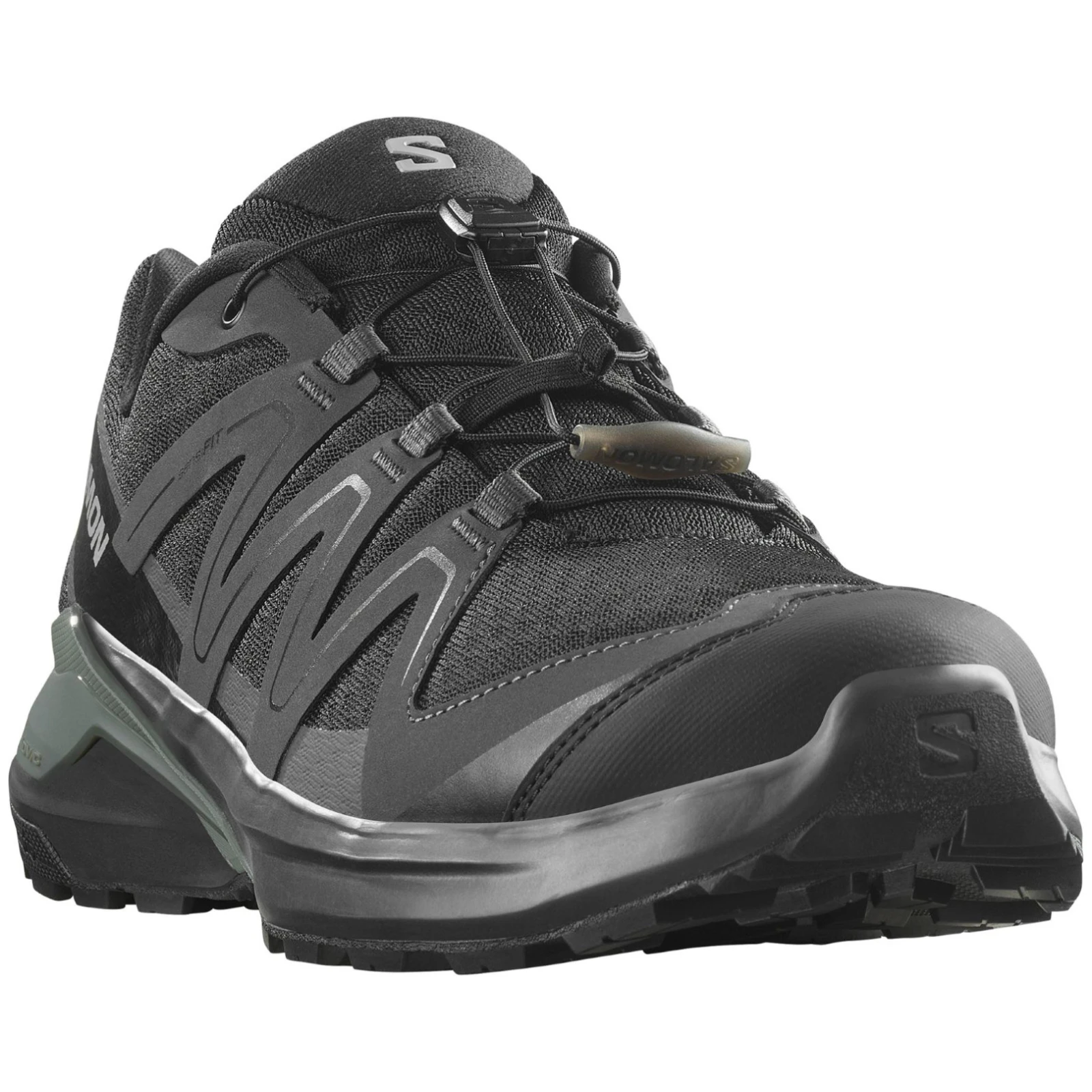 Die Examotion Trailrunning-Schuhe für Herren von Salomon bieten Ihnen Sicherheit bei technischen Abfahrten und meistern spielend jeden Trail. PDie Contagrip®-Außensohle mit tiefem Profil sorgt für sicheren Halt auf Schotter, Schlamm und nassen Steinen. Die Quicklace-Technologie ermöglicht schnelles Anziehen und perfekten Halt mit einem Zug, während das SensiFit™-System für präzisen Halt des Fußes sorgt – der Schuh sitzt wie angegossen.