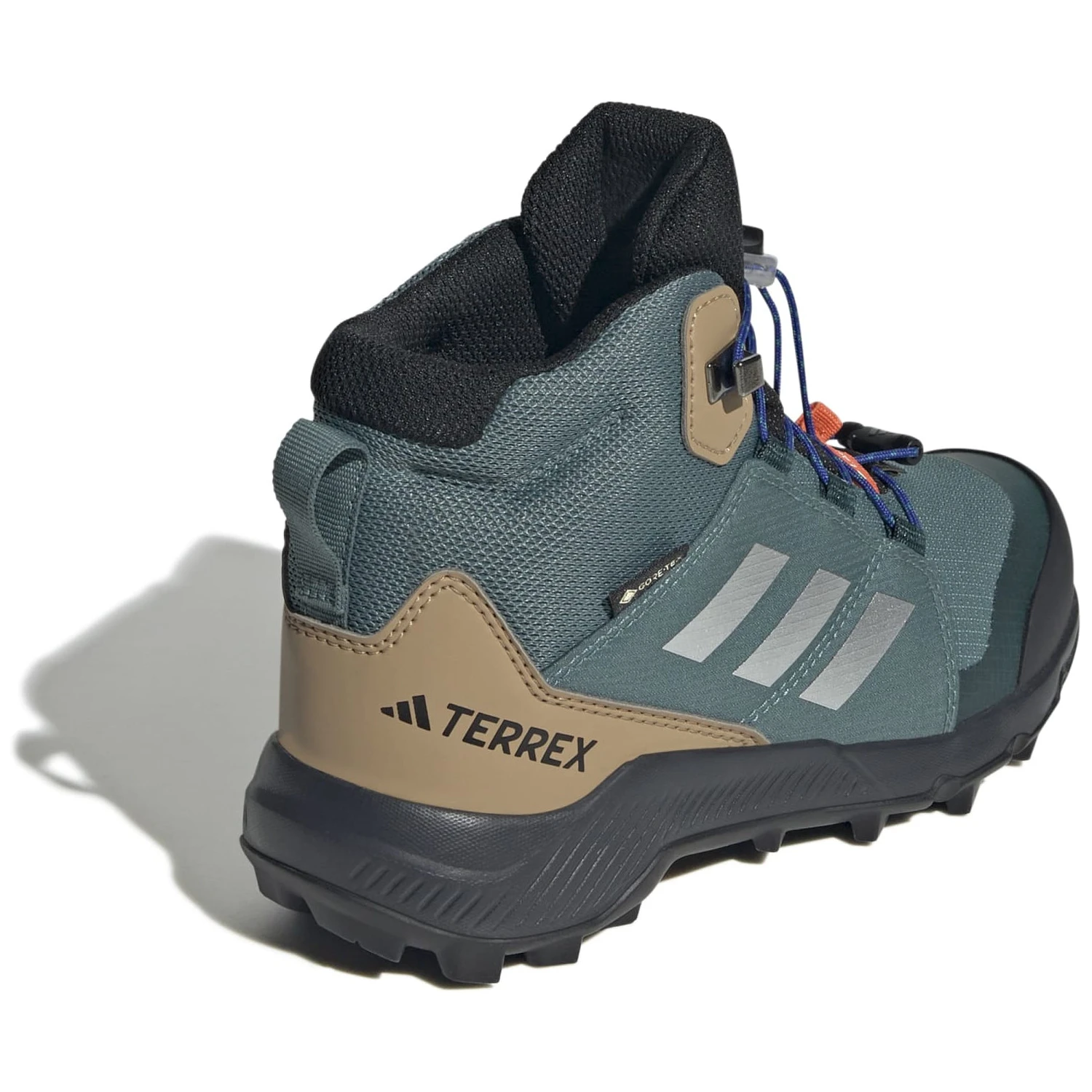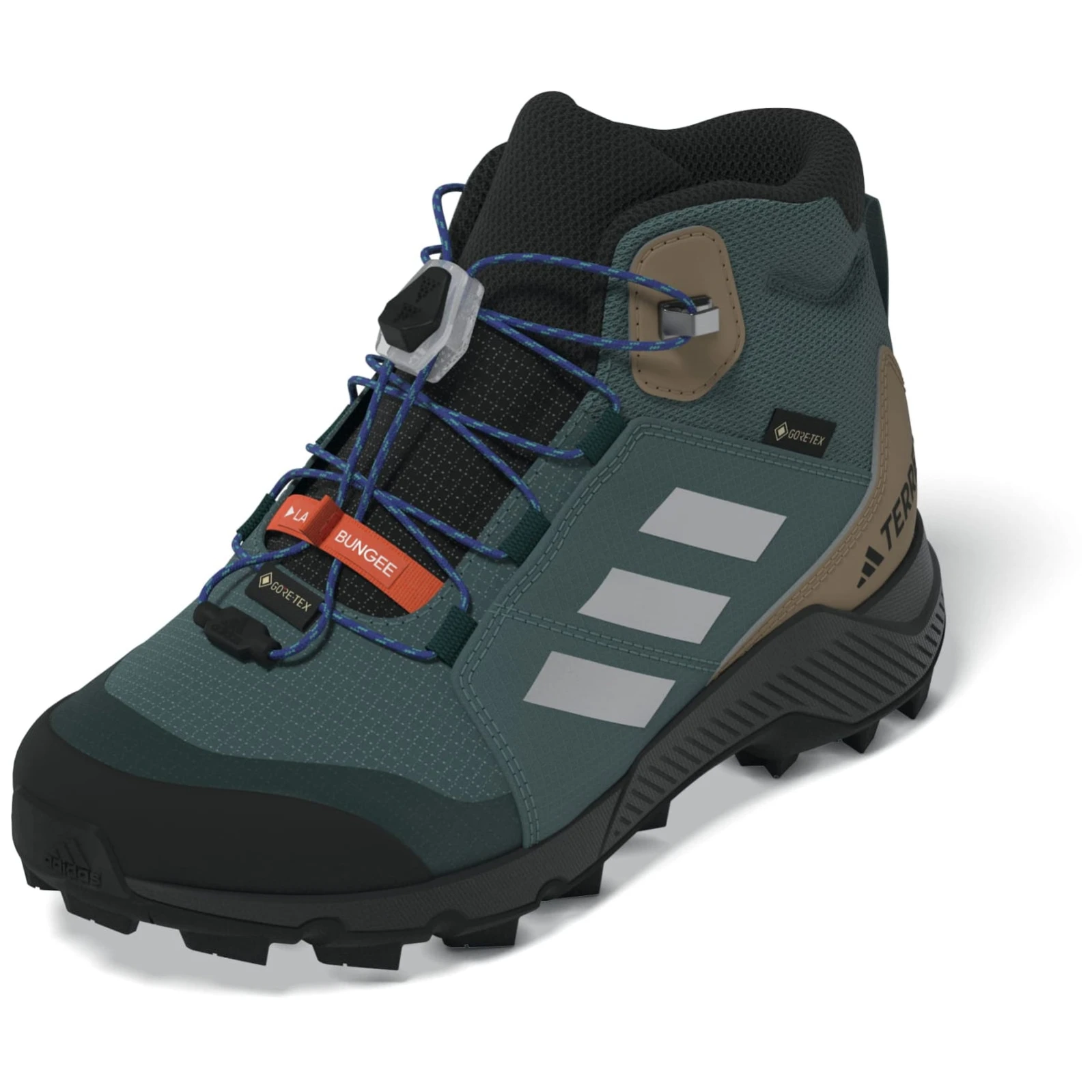 Kinder-Wanderschuh Adidas Terrex Mid GTX K mit einer GORE-TEX-Membran schützt die Füße vor Feuchtigkeit. Komfort, Haltbarkeit und recycelte Materialien für kleine Entdecker.
