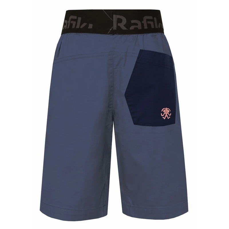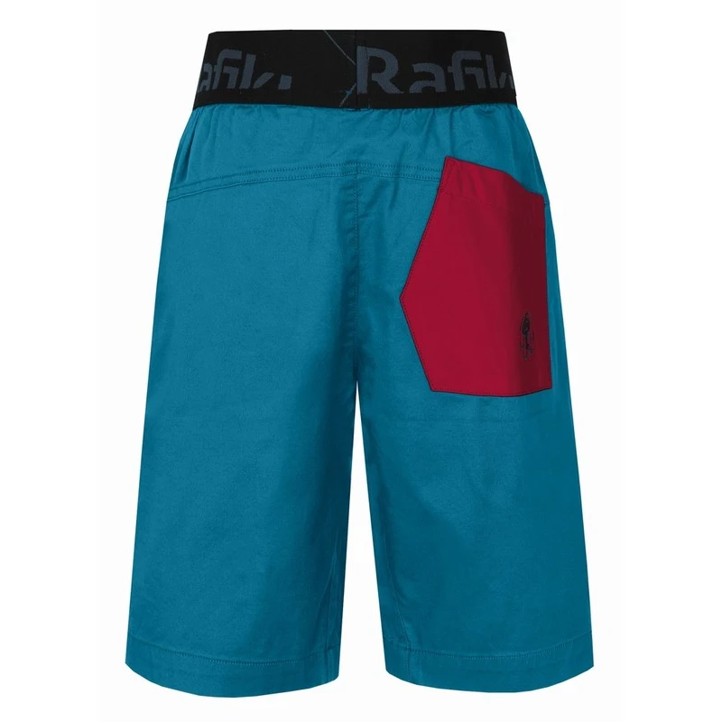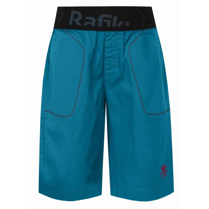 Universelle Kinder-Baumwollshorts Rumney Jr der Firma Rafiki mit elastischem Bund und markanter Gesäßtasche, geeignet zum Bouldern und Seilklettern. Schnitt und Material sind an beliebte Shorts für Erwachsene angelehnt. Mehr Farboptionen für Jungen und Mädchen.