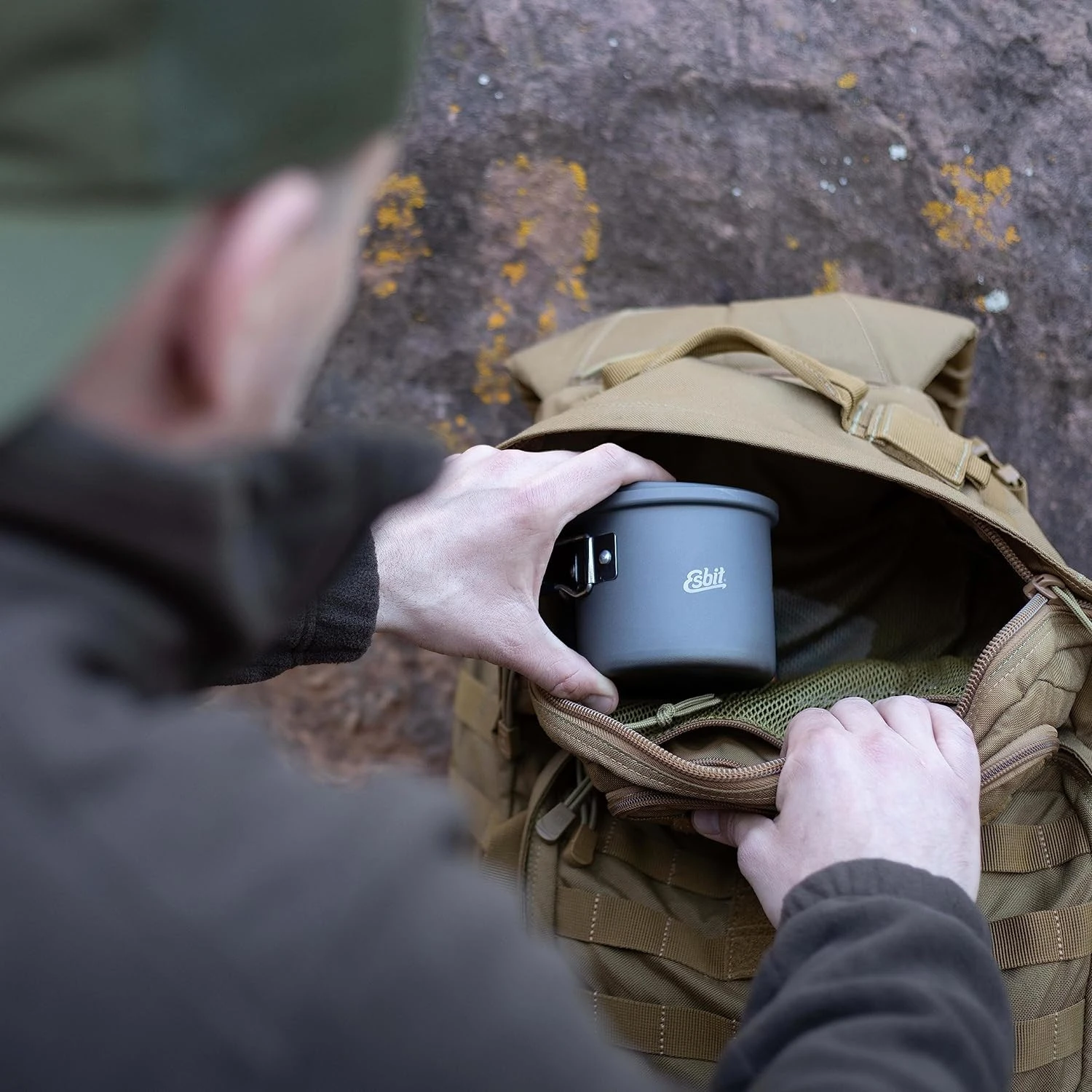 Der Esbit-Topf ist zum Wärmeschutz mit Silikon beschichtet. Dank eines speziellen Details am Deckel ist das Kochen noch komfortabler. An der Unterseite befindet sich nämlich ein Bügel. Dieser ermöglicht es Ihnen, ihn an den Rand des Campingkochers zu hängen. So wird verhindert, dass der Deckel schmutzig wird. Gleichzeitig haben Sie beim Kochen die Hände frei.