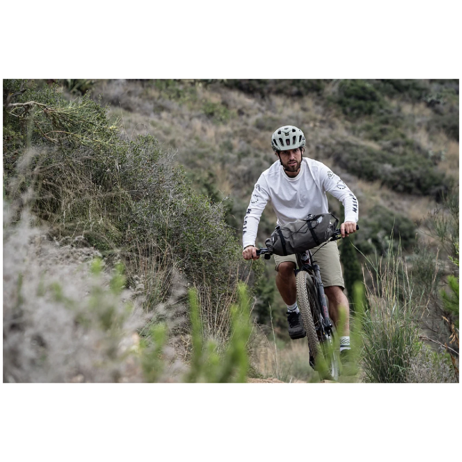 Robuste Konstruktion mit interner Verstärkung und zusätzlicher Befestigung am Steuerrohr sorgt für Stabilität auch in anspruchsvollem Gelände. Wasserdichtes Material mit IP64-Schutz hält Ihre Ausrüstung bei jedem Wetter trocken, während doppelte Rollverschlüsse auf beiden Seiten einen schnellen Zugriff auf den Inhalt ermöglichen.