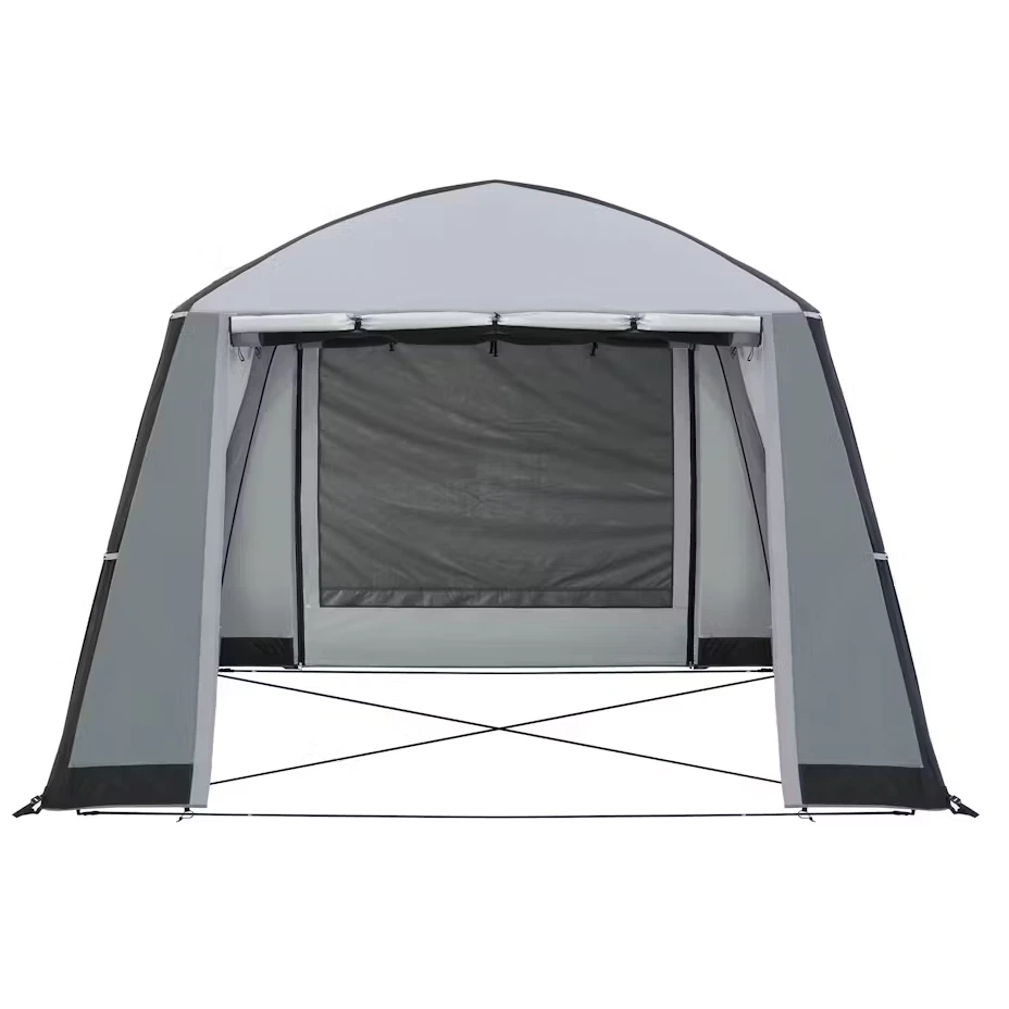 Der 3 x 3 m große Unterstand bietet ausreichend viel Platz für einen gemütlichen Aufenthalt im Freien. Es besteht aus strapazierfähigem 150D Oxford Polyester mit einer Wassersäule von 3000 mm, was auch bei widrigen Wetterbedingungen zuverlässigen Schutz gewährleistet. Die Stehhöhe von 180 cm bietet viel Platz für bequeme Bewegung.