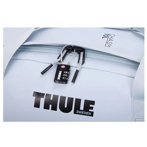 Die supercoole Sporttasche Chasm 70L der Marke Thule ist die perfekte Wahl für mehrtägige Abenteuer, bei denen sie ausreichend Stauraum für die nötige Ausrüstung bietet. Es besteht aus einem geräumigen Hauptfach mit extra breitem Eingang, zwei inneren Reißverschlusstaschen aus Netzmaterial und einer äußeren Reißverschlusstasche.