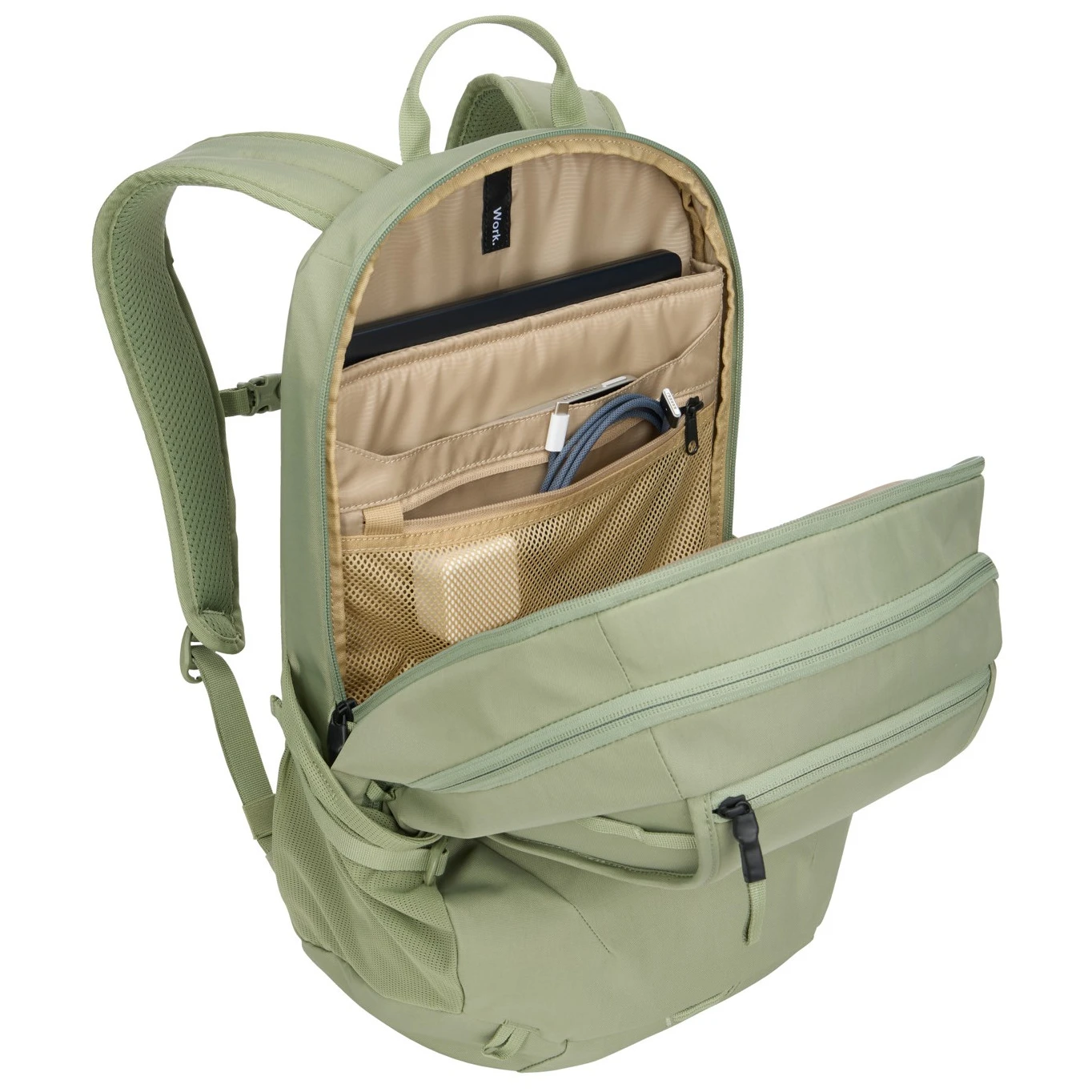 Universeller Rucksack EnRoute 23L der Marke Thule, inspiriert von Outdoor-Aktivitäten. Er verfügt über mehr Stauraum, sodass Sie auch unterwegs Ordnung in Ihren Sachen haben. DDas Organisationsfach ermöglicht einen schnellen Zugriff auf kleine Gegenstände, Schreibutensilien oder Schlüssel. Ins zweite Fach können Sie Wechselkleidung, verschiedene Extras oder andere persönliche Gegenstände verstauen. Er verfügt über eine TPU-Tasche mit Reißverschluss, die wasserdicht ist und so den Inhalt schützt und dank ihrer Undurchsichtigkeit auch Ihre Privatsphäre.