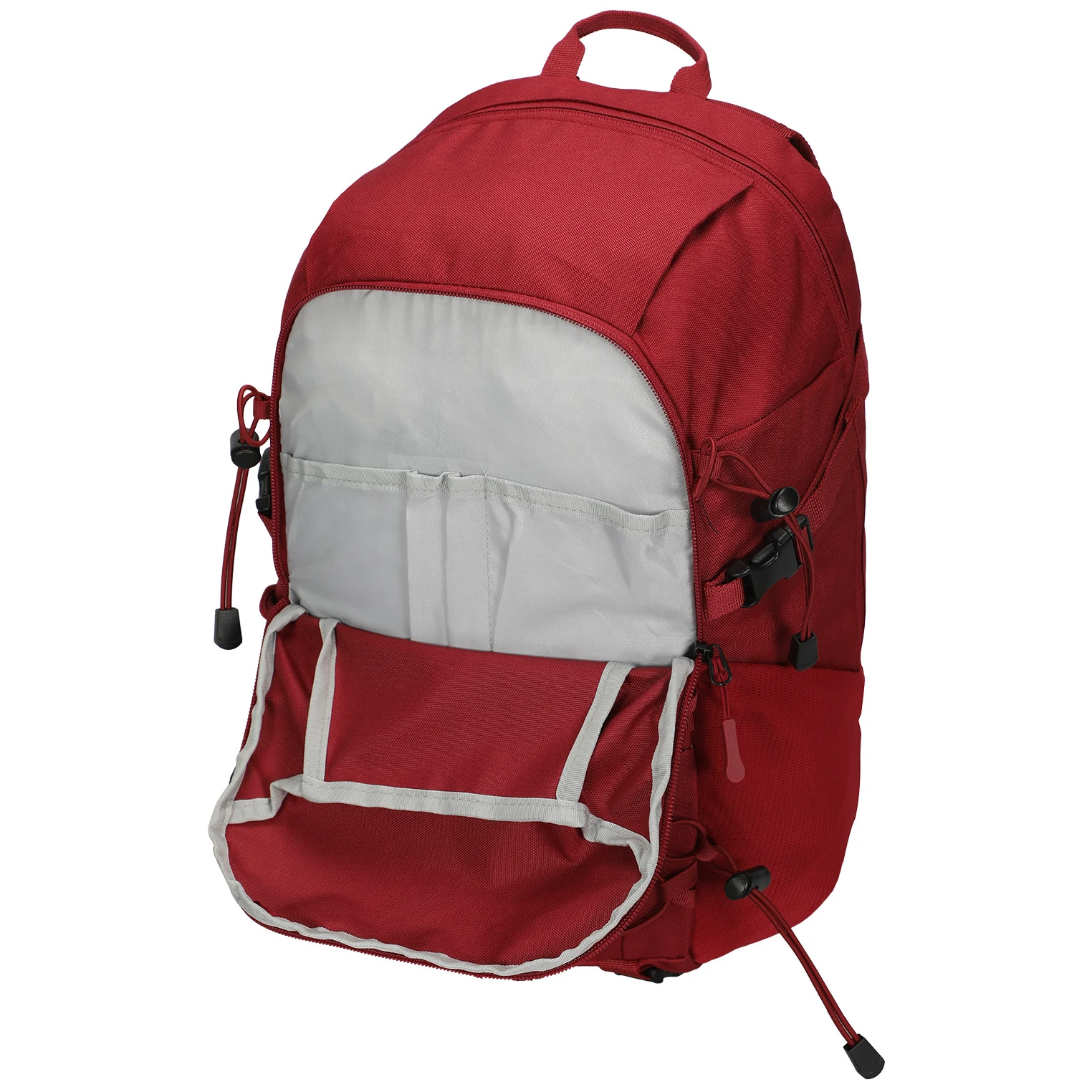 Selbstverständlich sind auch zwei Seitentaschen für eine Trinkflasche vorhanden. An den äußeren Gummibändern können Sie problemlos eine Jacke oder ein Sweatshirt befestigen.