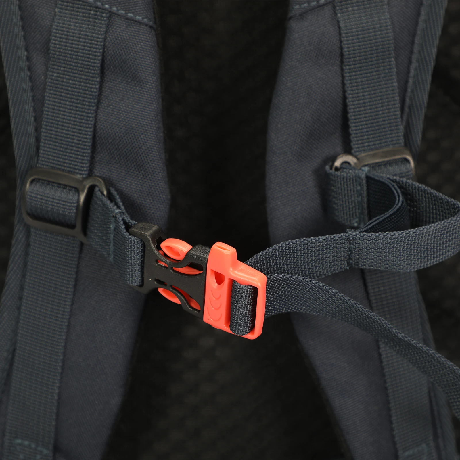 Außerdem verfügt der Rucksack über einen Brustgurt mit Signalpfeife, reflektierende Elemente, Schlaufen zur Befestigung weiterer Ausrüstung (z. B. Wanderstöcke) oder Kompressionsriemenzur Stabilisierung des Inhalts.