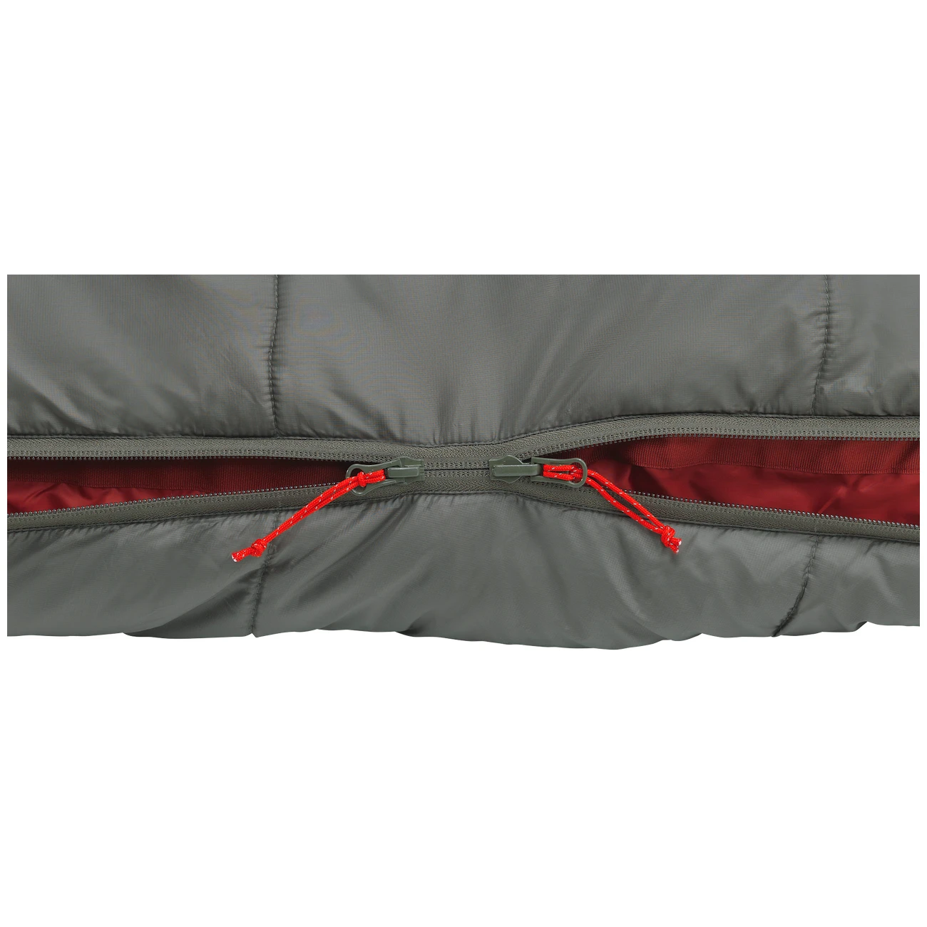 Selbstverständlich ist ein zweiwege YKK-Reißverschluss vorhanden, der über die gesamte Lebensdauer zuverlässig funktioniert. Der Reißverschluss hat eine abgedeckte Blende gegen Wärmeverlust und einen Schutz gegen Hängenbleiben. Es kann die Reißverschlussseite gewählt werden, so dass die Schlafsäcke miteinander verbunden werden können. Bei diesem Modell befindet sich der Reißverschluss auf der linken Seite.