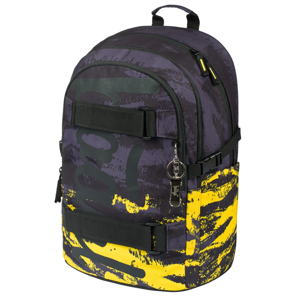 Der ergonomische Schulrucksack Skate von Baagl eignet sich für Kinder ab der 3. Klasse der 1. Stufe bis zur 2. Stufe der Grundschule. Er verfügt über eine Tasche für einen Laptop und Riemen für ein Skateboard.