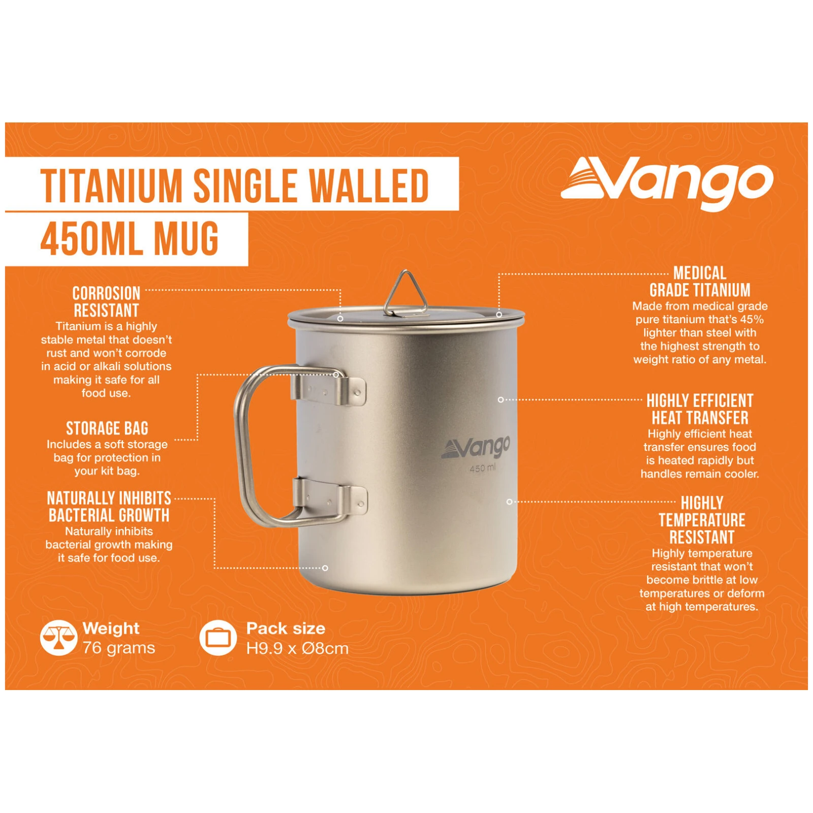 Vango Titanium Single Walled Mug 450ml