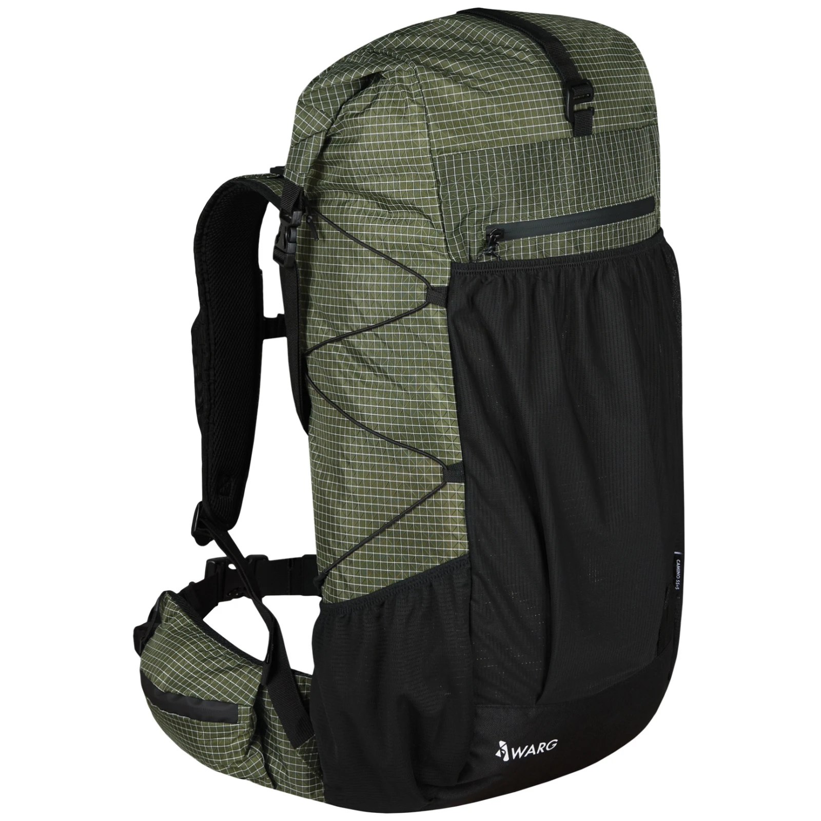 Der ultraleichte Rucksack Warg Camino 55+5 L mit einem Gewicht von nur 895 g ist die ideale Wahl für alle, die einen leichten und zuverlässigen Rucksack für längere Touren oder mehrtägige Wanderungen suchen. Er ist aus Nylon Dyneema Ripstop-Material gefertigt, das extrem leicht ist und gleichzeitig eine hohe Abriebfestigkeit und häufigen Gebrauch beibehält.