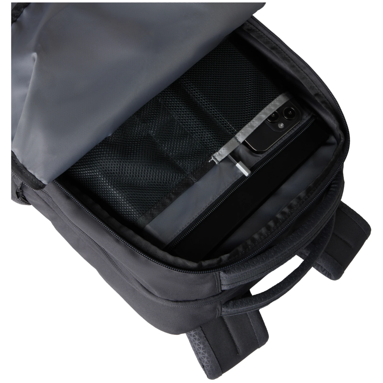 Urban-Rucksack The North Face Vault bietet Komfort, auch wenn er voll beladen ist. Gleichzeitig bietet sie genügend Volumen, um alles Wichtige für den ganzen Tag zu verstauen. Der Rucksack weist nun ein schlankeres Profil auf, sodass er auch auf kleinem Raum, beispielsweise bei Fahrten mit öffentlichen Verkehrsmitteln, weniger behindert. Das FlexVent™ -Tragesystem mit geformten Schultergurten, einem gepolsterten Netzrücken und einem äußerst atmungsaktiven Hüfteinsatz sorgt für Komfort und verteilt das Gewicht selbst eines voll beladenen Rucksacks.