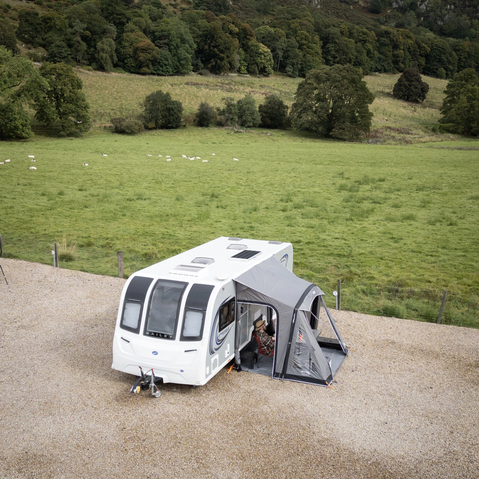 Das Zelt besteht aus dem strapazierfähigen Material Dynamic Weave 100™, das eine Wassersäule von 4.000 mm und eine hohe Festigkeit bietet, wodurch auch bei anspruchsvollen Outdoor-Anwendungen Zuverlässigkeit gewährleistet ist. Für die Stabilität der Konstruktion sorgen vorgebogene Träger und das System TBSII, das seitliche Bewegungen bei starkem und wechselhaftem Wind begrenzt. Die einstellbare Höhe der Markise von 235–250 cm ermöglicht die Nutzung mit verschiedenen Wohnwagen und Wohnmobilen.