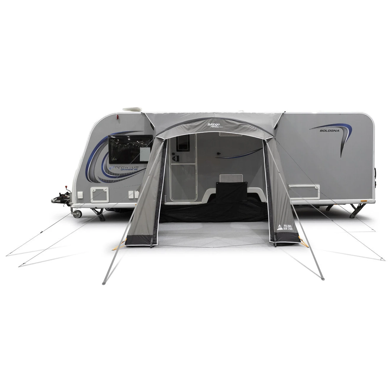 Zelt für Wohnwagen Palma Air 260 Vango mit AirBeam®-Technologie ermöglicht einen schnellen Aufbau ohne Stangen, strapazierfähiges Gewebe Dynamic Weave 100™ und flexiblen Platz zum Essen und Stauraum.