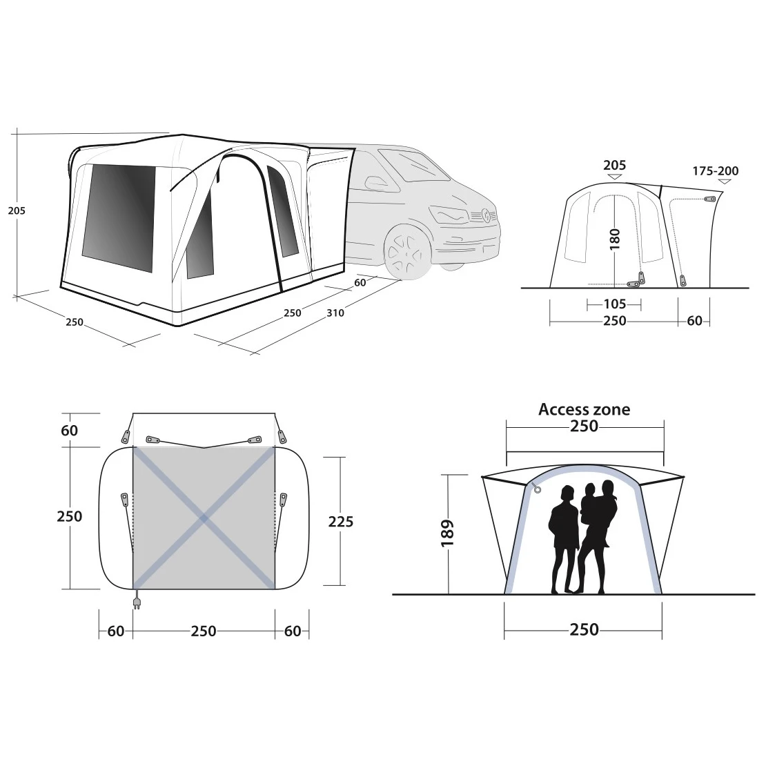 310 x 250 x 205 cm