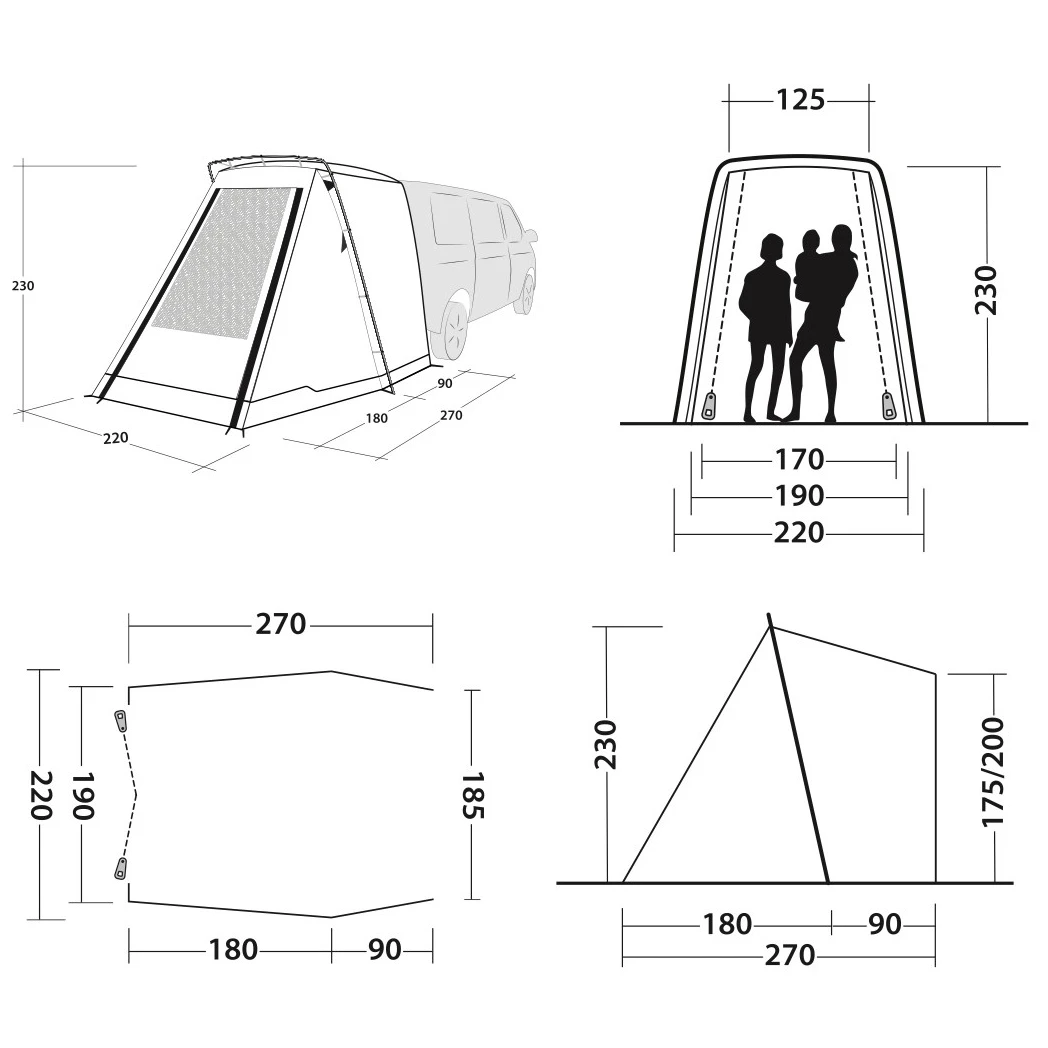 Freistehendes Vorzelt für VAN Sand Van von Outwell ist die perfekte Wahl für Reisebegeisterte, die Wert auf schnellen Aufbau und ausreichend geschützten Raum legen.