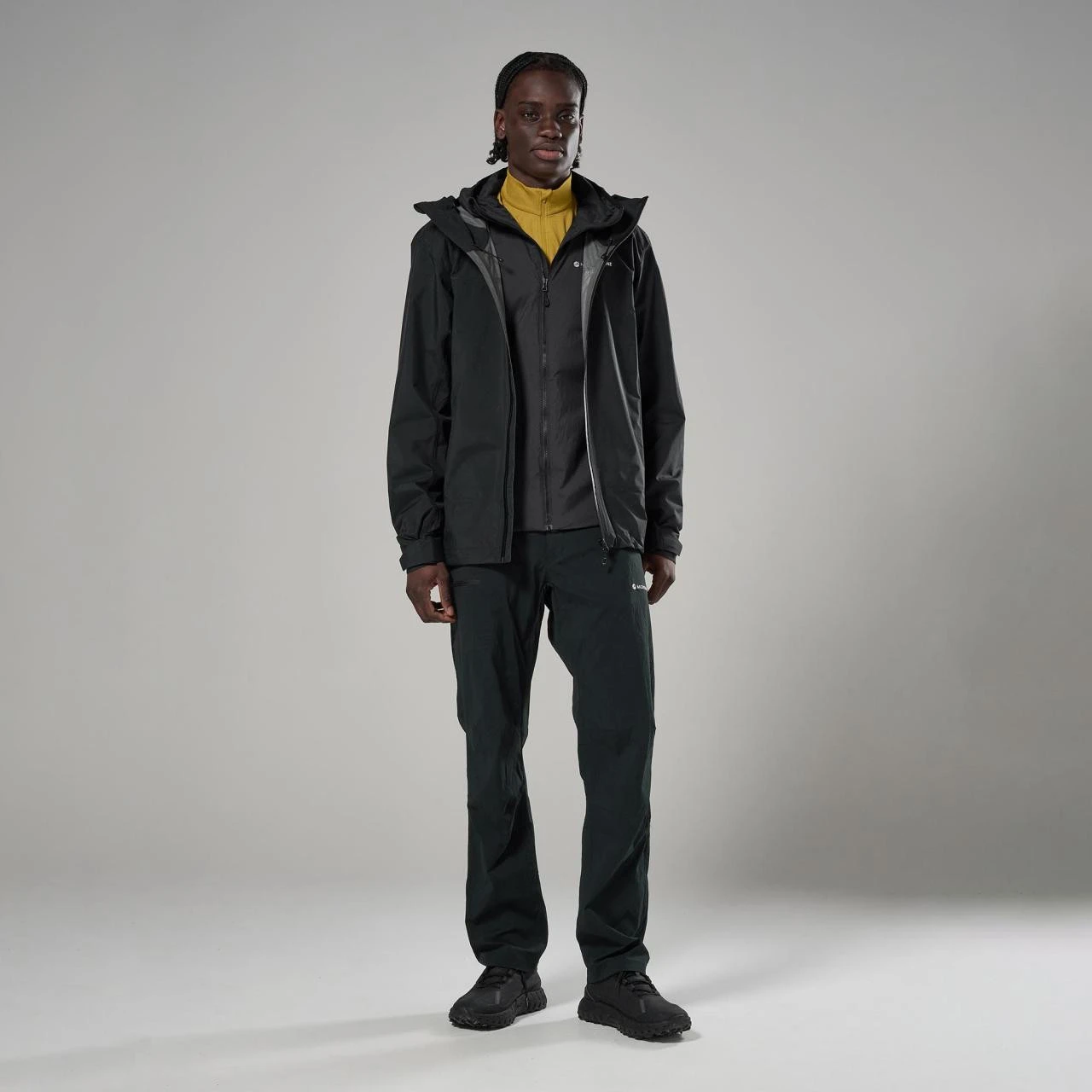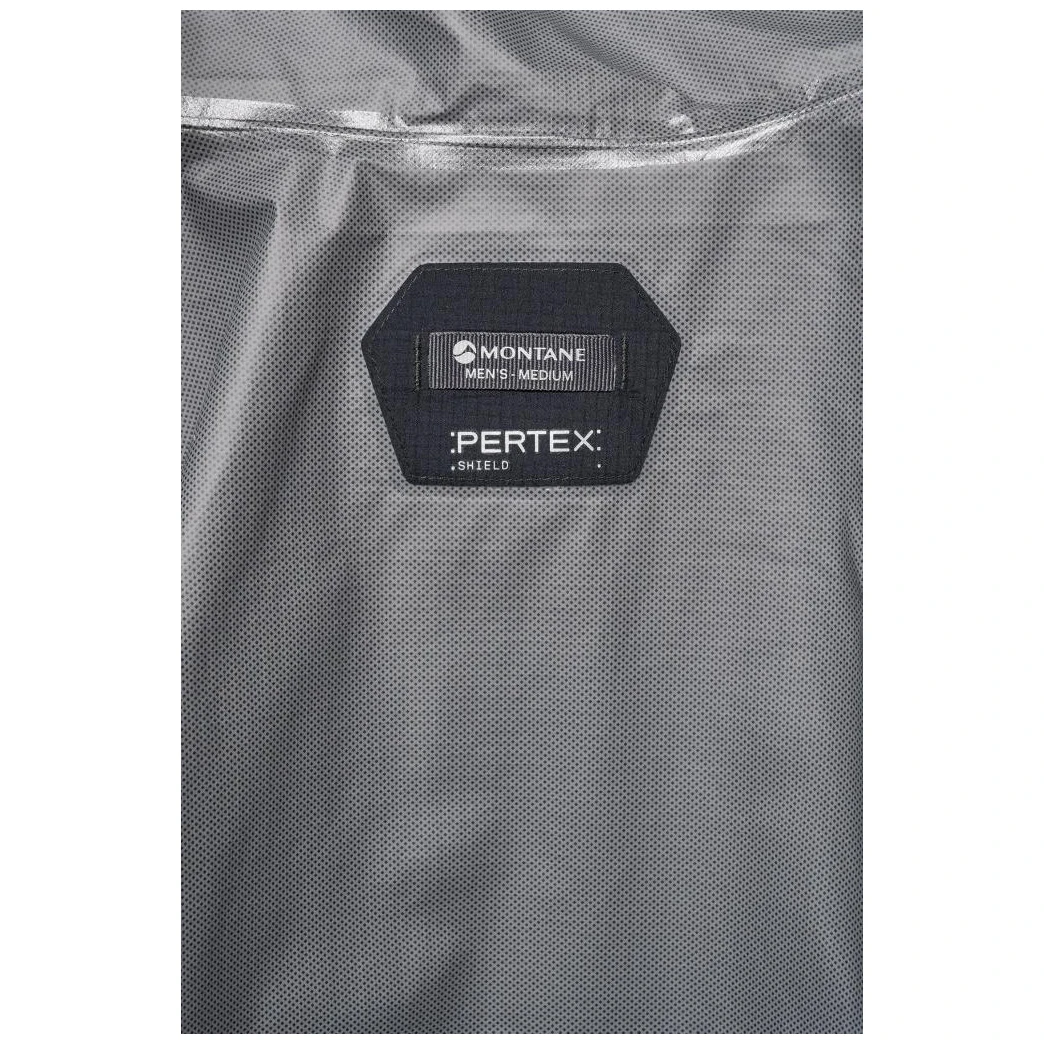 Die Basis bildet das Material Pertex® Shield 2,5 L, das ein recyceltes 40D Ripstop-Gewebe mit einer wasser- und winddichten Membran kombiniert. Die innere 20D Trikot-Fütterung ist angenehm auf der Haut und erhöht den Tragekomfort. Die Konstruktion ist auf geringes Gewicht und Funktionalität ausgelegt, wobei wenige Nähte die Haltbarkeit erhöhen und gleichzeitig die Atmungsaktivität bei aktiver Bewegung unterstützen.