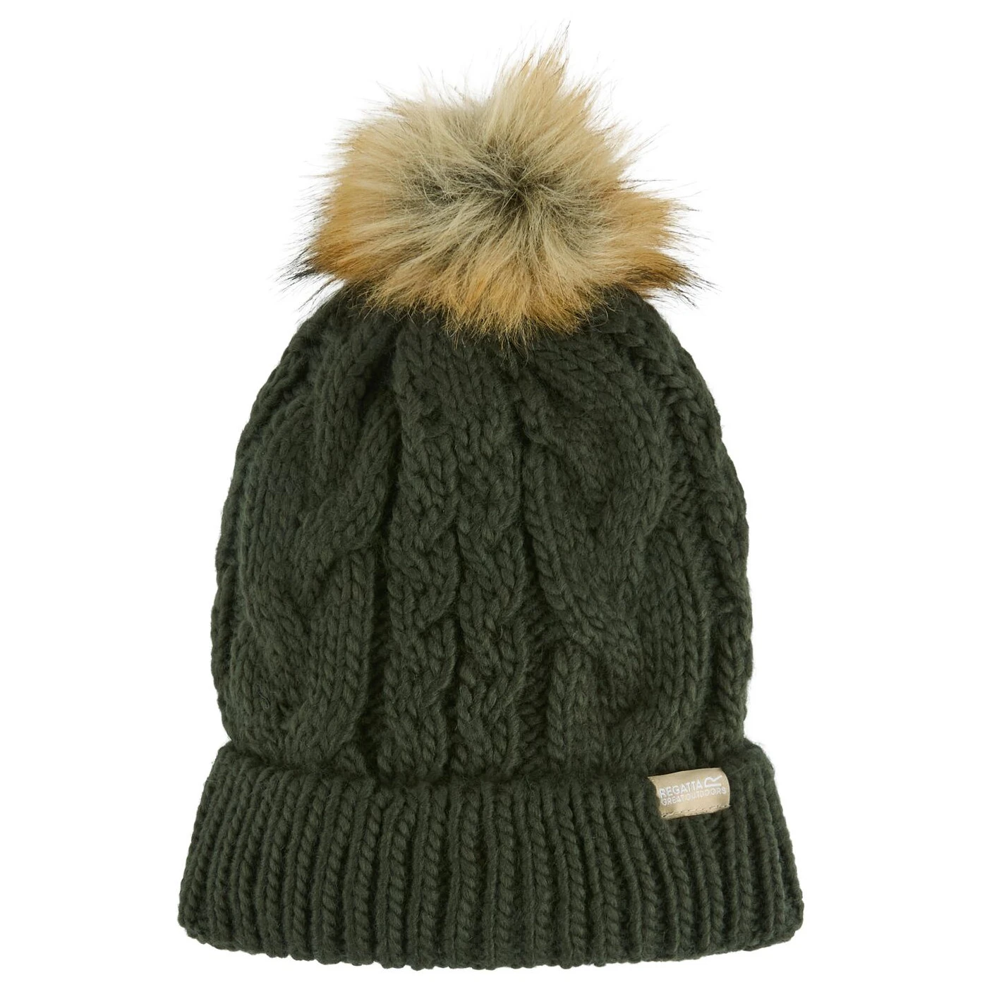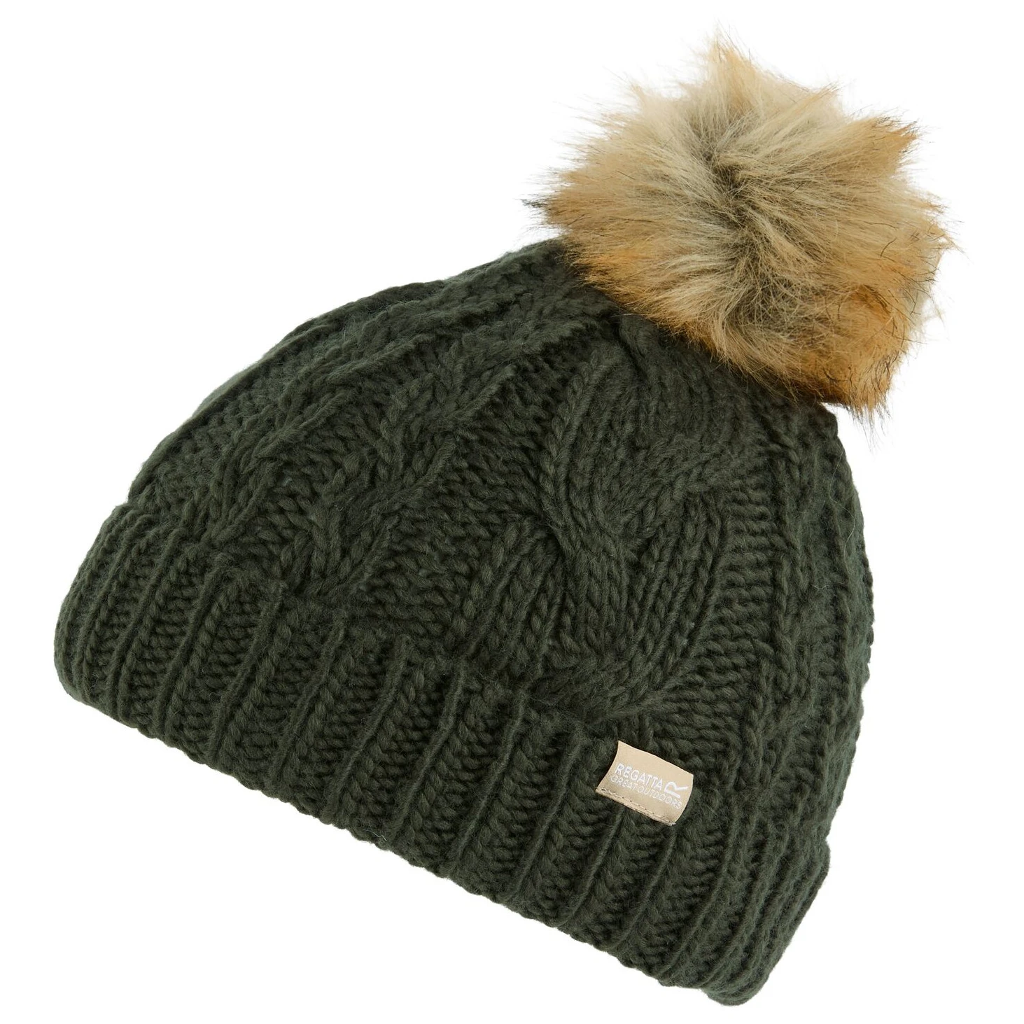 Die Damen-Wintermütze Lovella Hat VI der Marke Regatta kombiniert klassischen Zopfstrick mit mit einer trendy Kunstfell-Bommel und bietet so nicht nur Stil, sondern auch Wärmekomfort im Winterwetter.