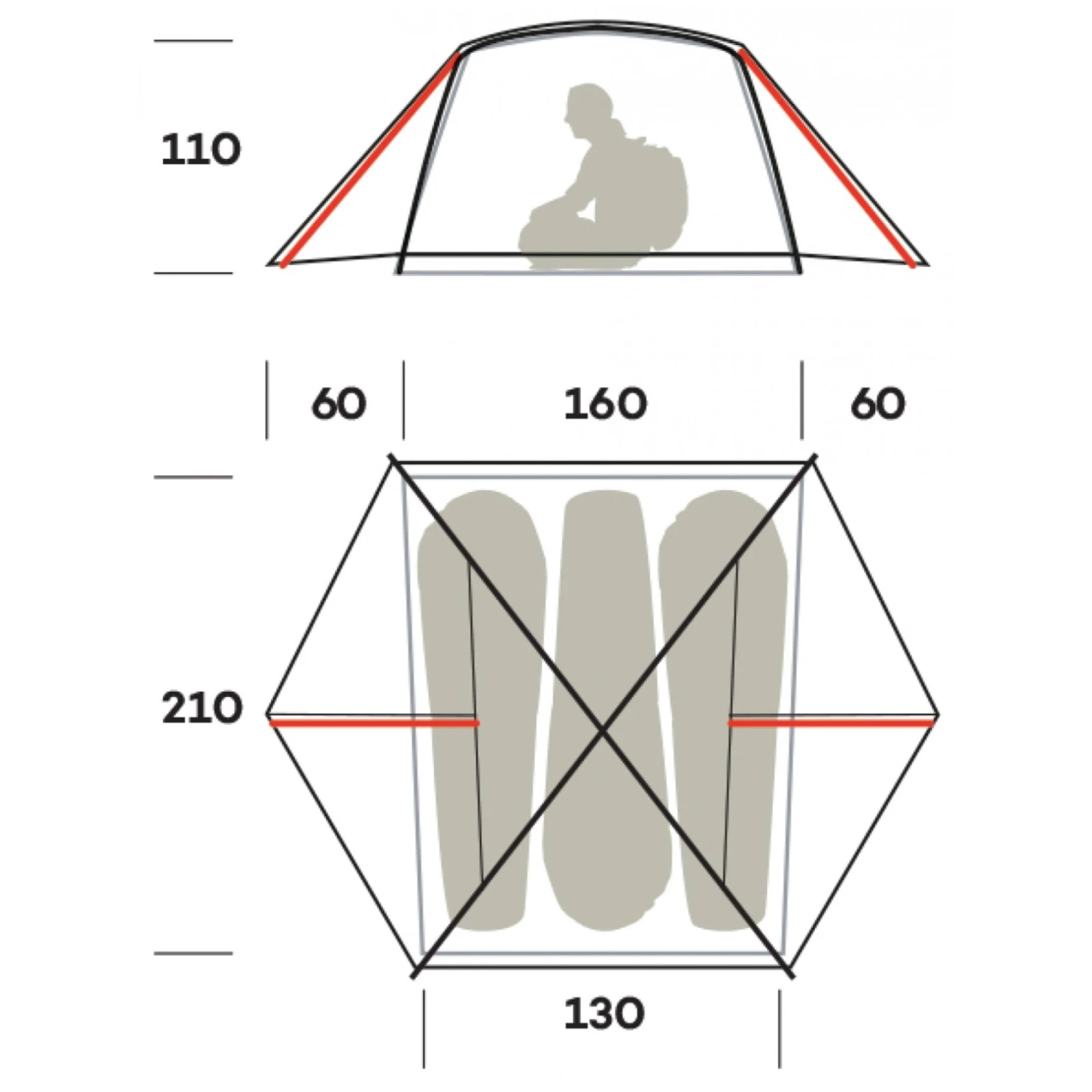 Es wird vor allem bei Familienzelten verwendet, bei denen der Schwerpunkt auf nutzbarem Raum und Komfort liegt. Mehr Schlafzimmer bedeuten mehr Privatsphäre und mehr Vielfalt im Innenraum.